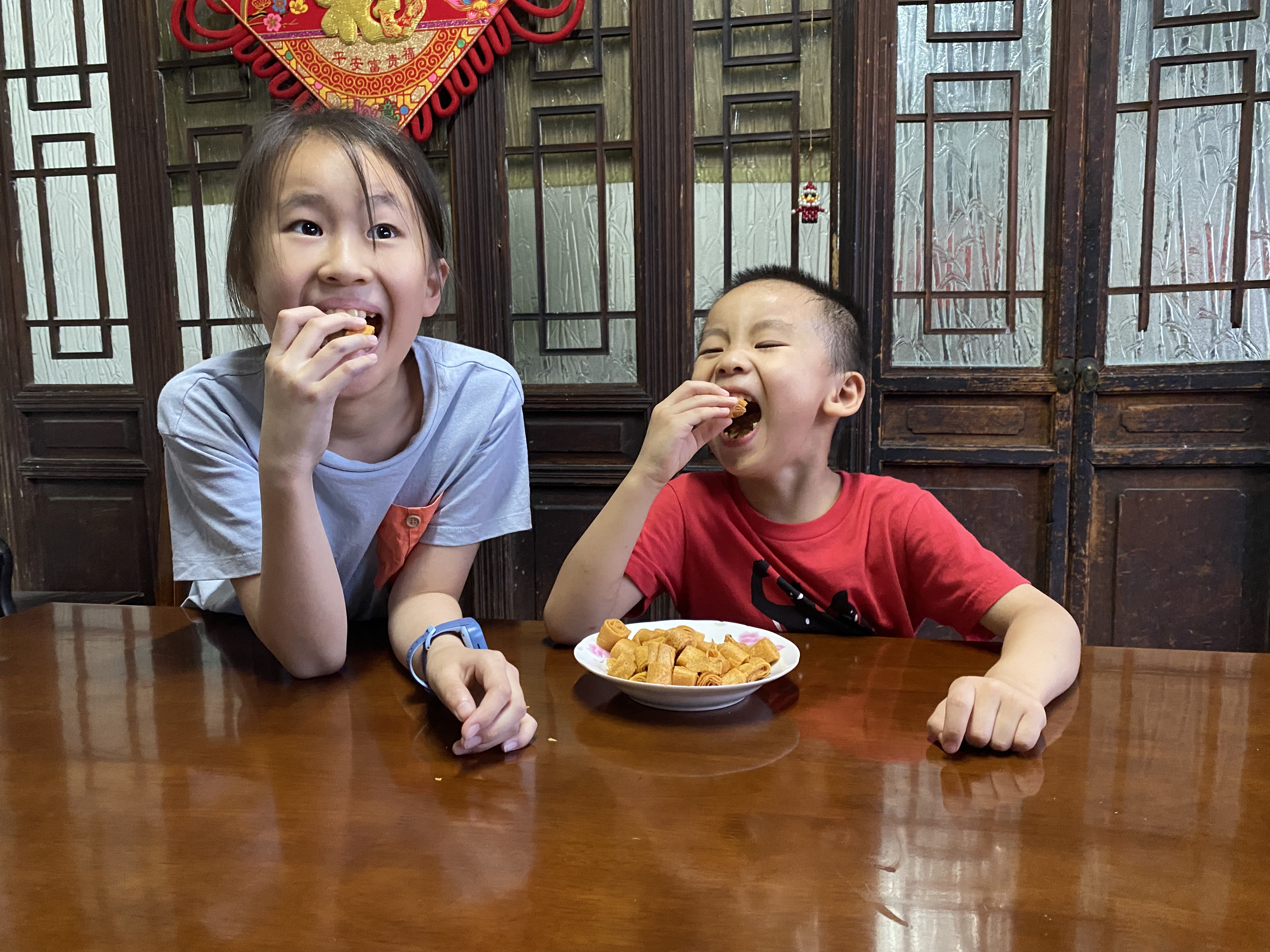 40号院是方正的一进院,院子里一棵近六十年的香椿树高大苍劲,绿荫如盖,守护着古色古香的一方天地。这个时节,小院地上落满了素洁清香的香椿花。青砖灰瓦、赭红色的垂花檐板……这里完好地保留了老北京四合院的传统规制,唯有冬天爱漏风的老式门板被卸下来,改成了镶玻璃木门,但也舍不得丢弃,被藏挂到入门处上方。除此之外,朱老一家的生活早已发生翻天覆地的新变化,即便住在胡同深处,他们也过上了现代化新生活。楼房里的便利设施在这里一个也不落,四合院里加装了三个厕所,所有房间都装上了电暖气和空调,全电的现代厨房随时可以做出一大桌子美食,快递外卖随叫随到。