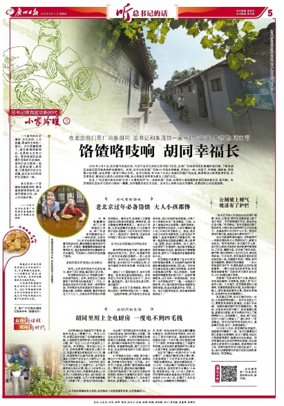 近日,广州日报记者走访有“北京十大最美胡同”之一美称的草厂四条,在青砖小巷间感受老胡同里的新生活、新风貌。朱茂锦追忆起总书记到访小家的一幕幕,当时情景仍然历历在目。总书记心系群众的为民情怀,总是让他心头倍感温暖。
