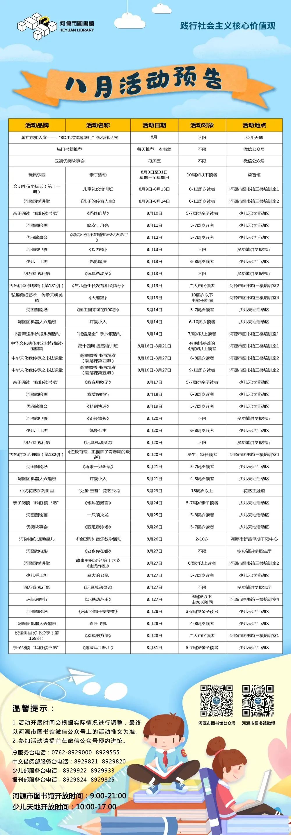 河源市图书馆8月活动: