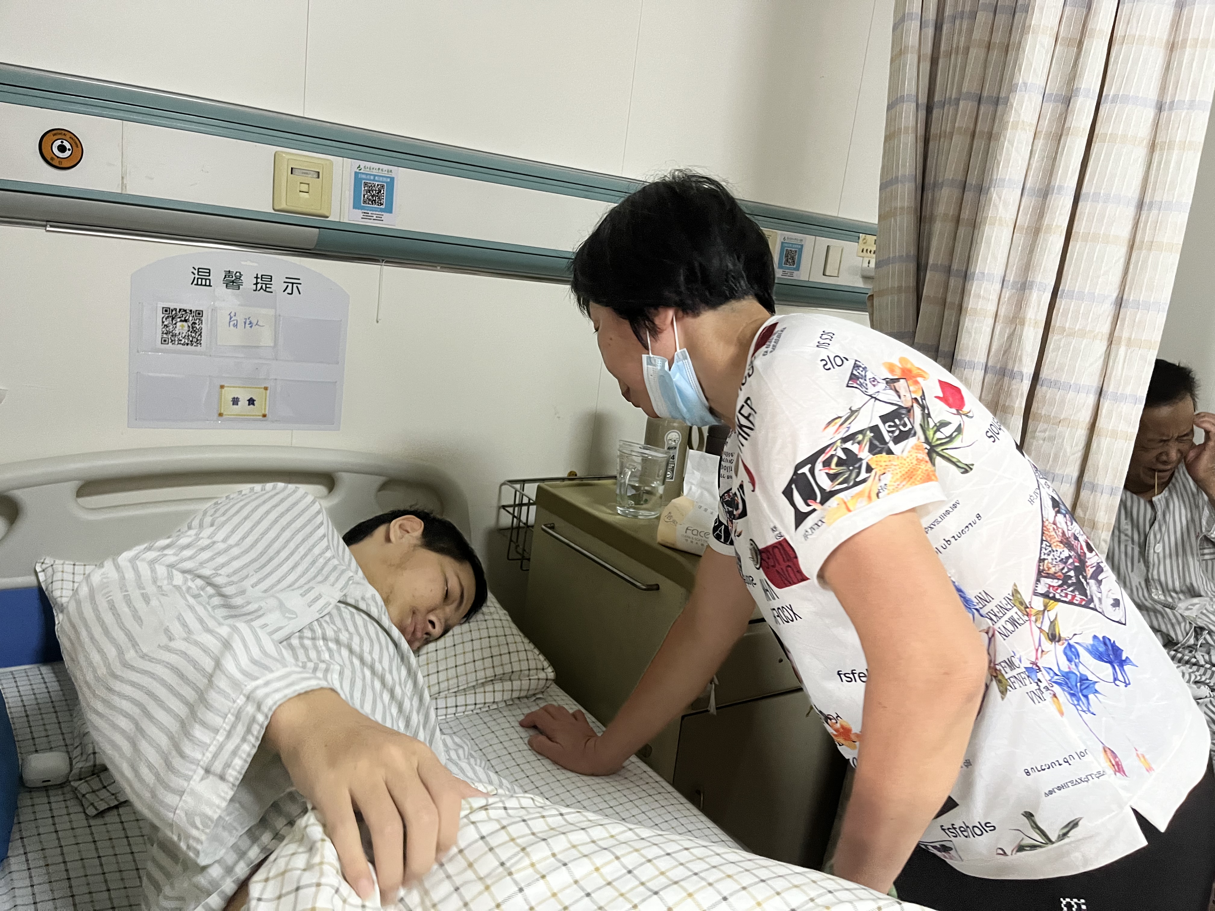 过去这4个月里,李秋萍大部分时间都是在儿子的病床旁支起一张行军床陪护,有时病房里实在没位置,她就在医院的过道上打地铺。4个月下来,李秋萍瘦了10斤。
