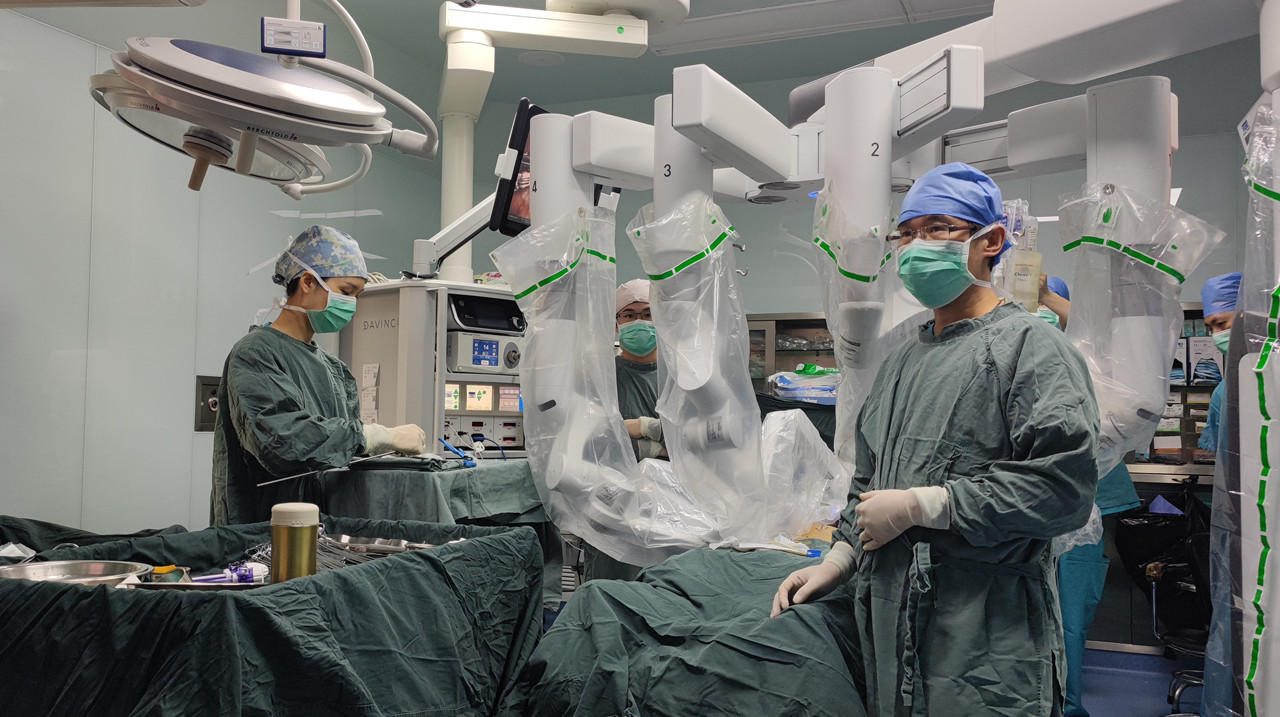 熊思维医生团队通过手术机器人为患者做手术