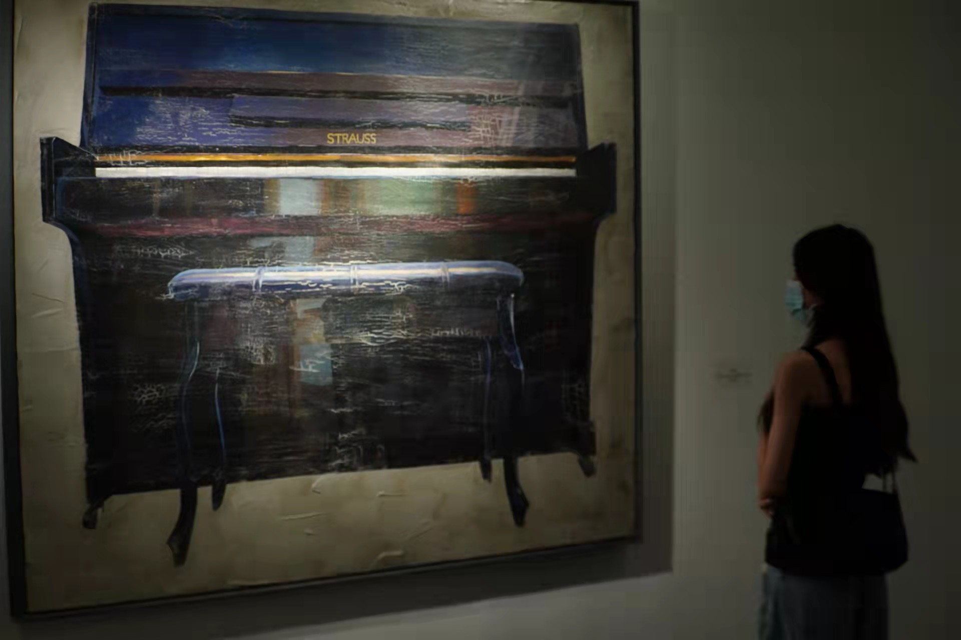 物,作为绘画的对象,给观者提供了一种以形体为中心的、更在眼前的空间。某种意义上来说,艺术家郑云瀚正在进行一场静物画领域的当代性实验。在这些作品的创作过程中,郑云瀚把目光聚焦于家宅内的每一个独立物件:沙发、暖水瓶、炒锅……日常物的单纯绘画性表述背后是浓厚的哲学意味。以带有坚硬感的建筑材料附在画布上为底,斑驳的笔触承载着多样的思绪,在创作中呈现出一种自我修行般的内在体验。与之相符,本次展览的展陈颇具巧思。郑云瀚在展览中置入的钢琴、音乐和空间中展示的画作,试着将美术馆空间和私人空间混淆。这是关于安全感的,个体尺度的,并在可能的时刻,与另外的人相遇。私人的和公共的,在这里是一个有趣的整体。也许可以在郑云瀚的作品中,找到张力的同时,得到内心的平静和释放。