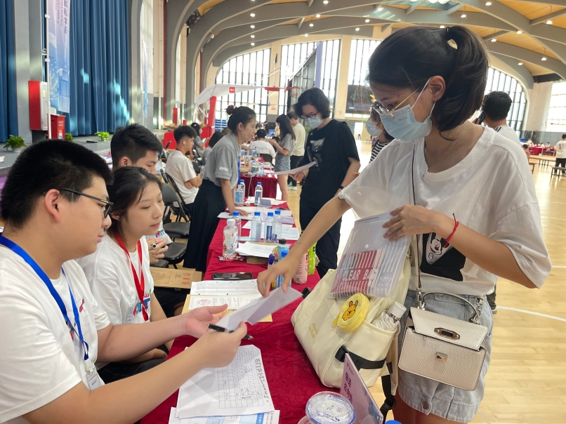 在报到现场,每位新生均可领取到一份 “新生礼包”,其中包括环保袋、校徽、文创雨伞、《新生手册》以及彩色文化衫。学校还为申请“绿色通道”的新生准备了行李箱,内含水杯、文具等各种学习和生活物品。