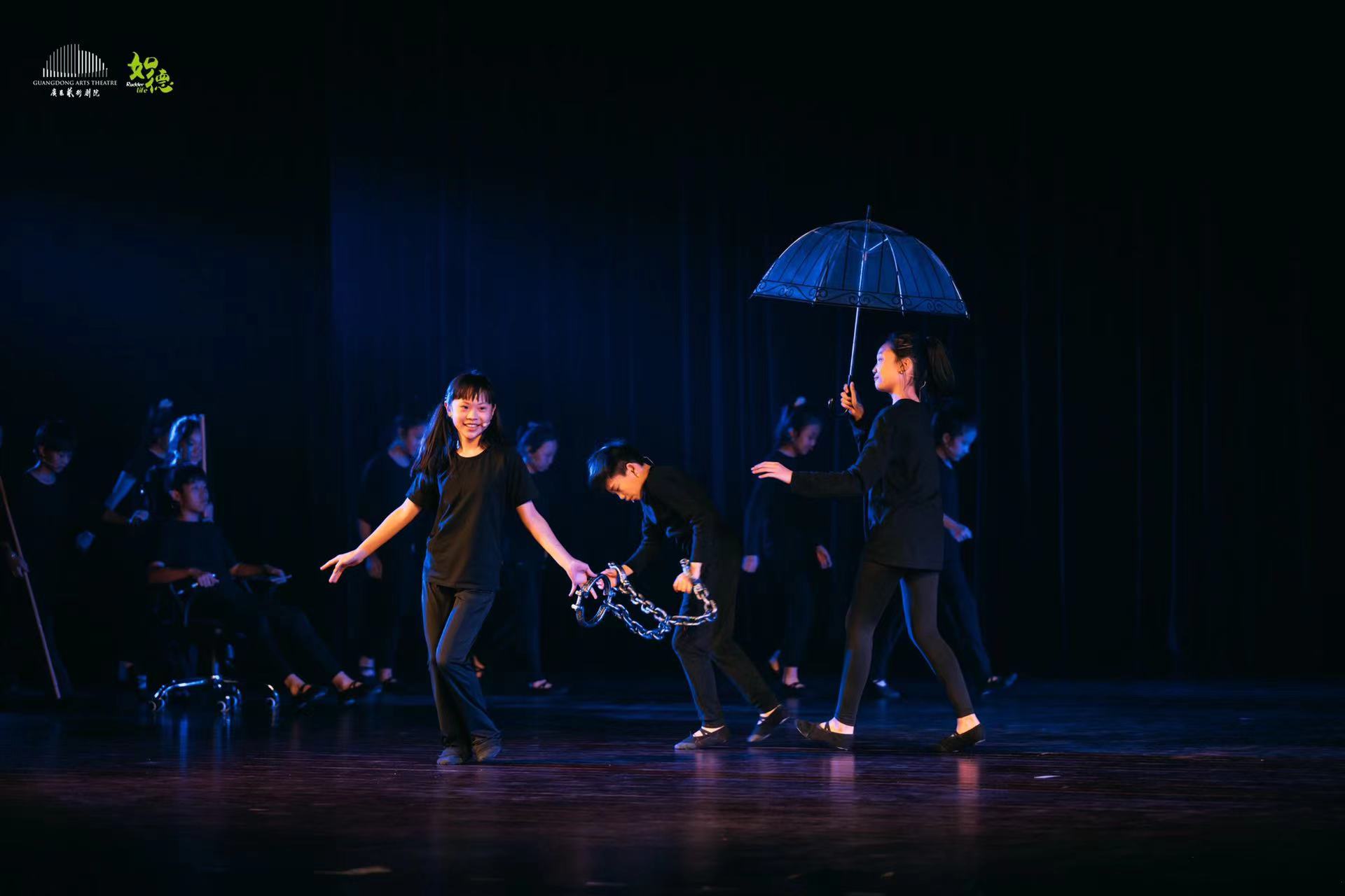 这种形式既便于演员进行抢装和角色切换,同时能让观众把更多的注意力放在演员表演本身,去发现小演员们特有的纯真而愉悦的表演状态。虽然简洁,但并不简单,要在有限的时间、空间和舞美道具中,打开观众无限的想象力,难度系数很大。因此编导团队一直运用各种各样的表演形式来丰富作品,这比使用豪华的服装、造型、舞美更具挑战。