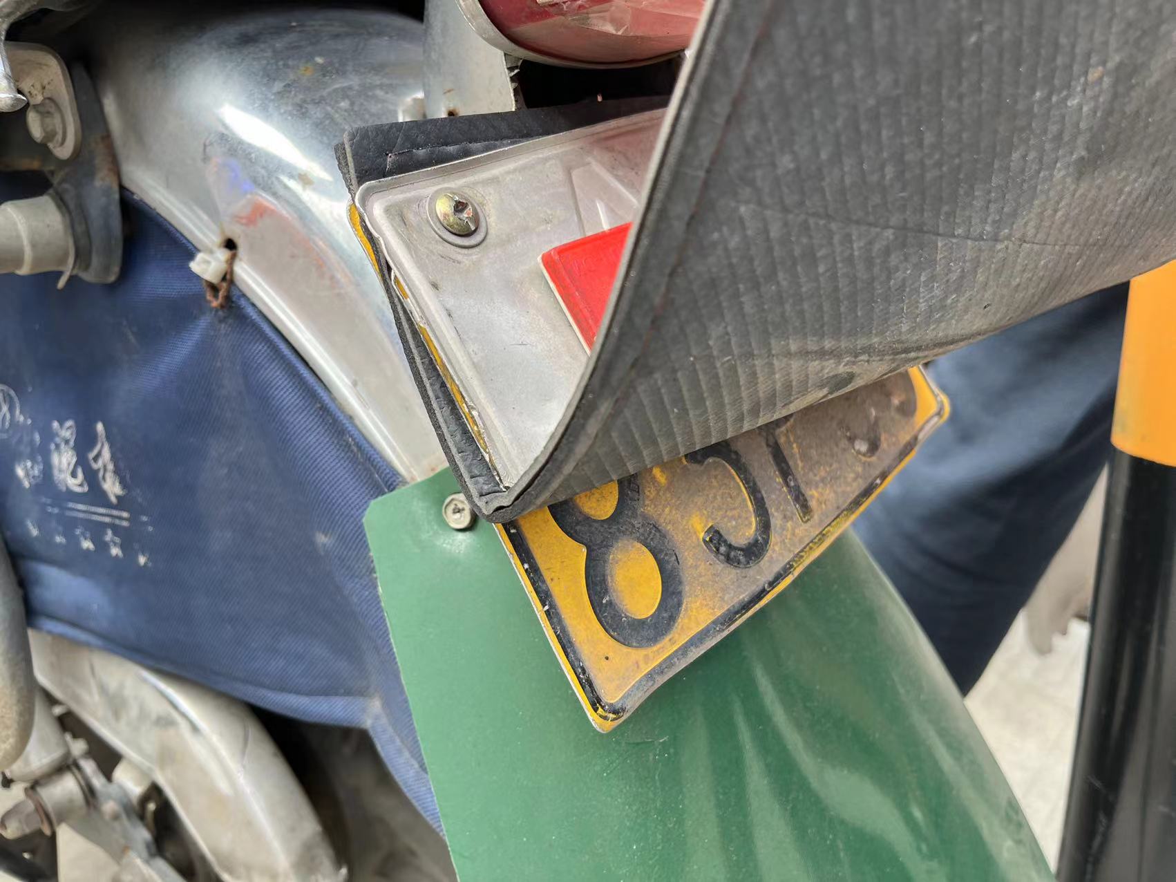 ◉现场:挡泥板间藏车牌,摩托车涉嫌非法营运被查