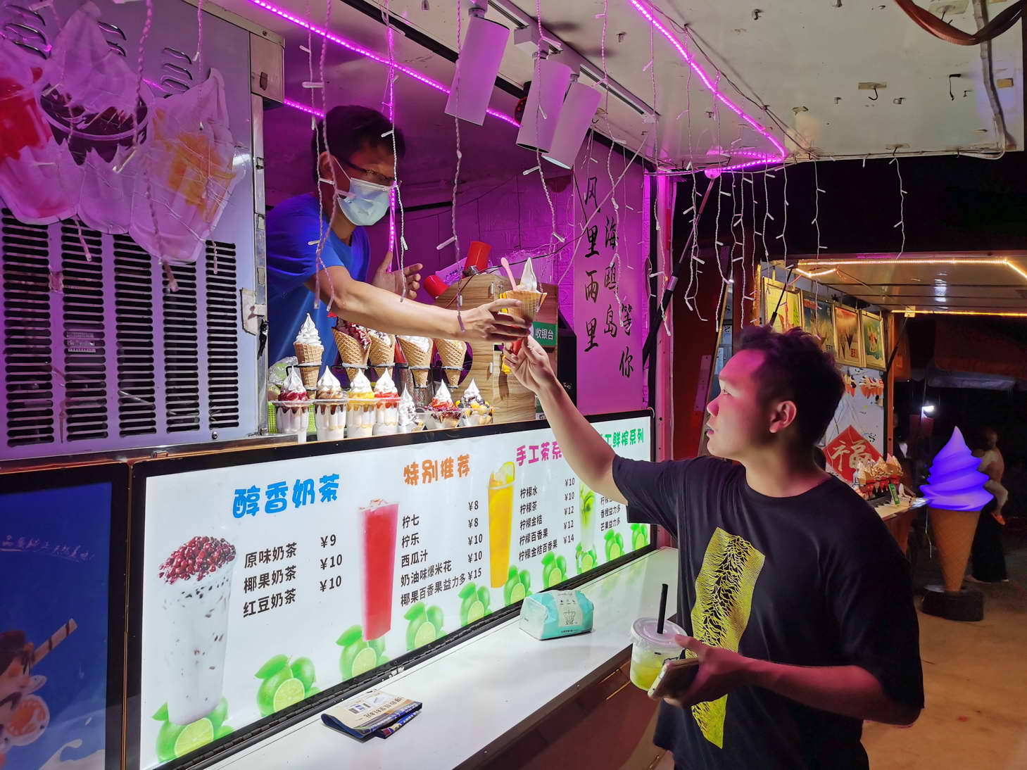 与胡杰瑜刚出来“练摊”相比,今年34岁的李峰杰选择全职干汽车流动雪糕小摊已经有三年了,算得上是练摊界的“老人”了。8月5日,长期在广州、佛山等地摆摊的他,通过抖音等平台知道韶关武江这个网红临时摆摊点火爆,当晚便开车从广州前来摆摊。