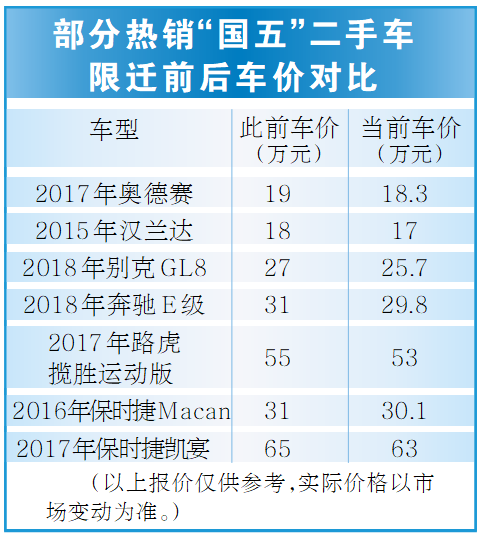 前两天,广州一名在金融公司工作的胡先生,顺利办完了一台“国五”二手机动车迁移注册手续。“我通过二手车交易平台搜到一台在杭州牌照的2010年‘国五车’,交易价是8.9万元,之前本地的可选车型很少。”胡先生表示,本月起,符合“国五”的外地二手机动车可以和“国六”一样迁户上广州粤A牌,像他这样想淘便宜代步车的消费者就“着数多多”,省了不少钱。