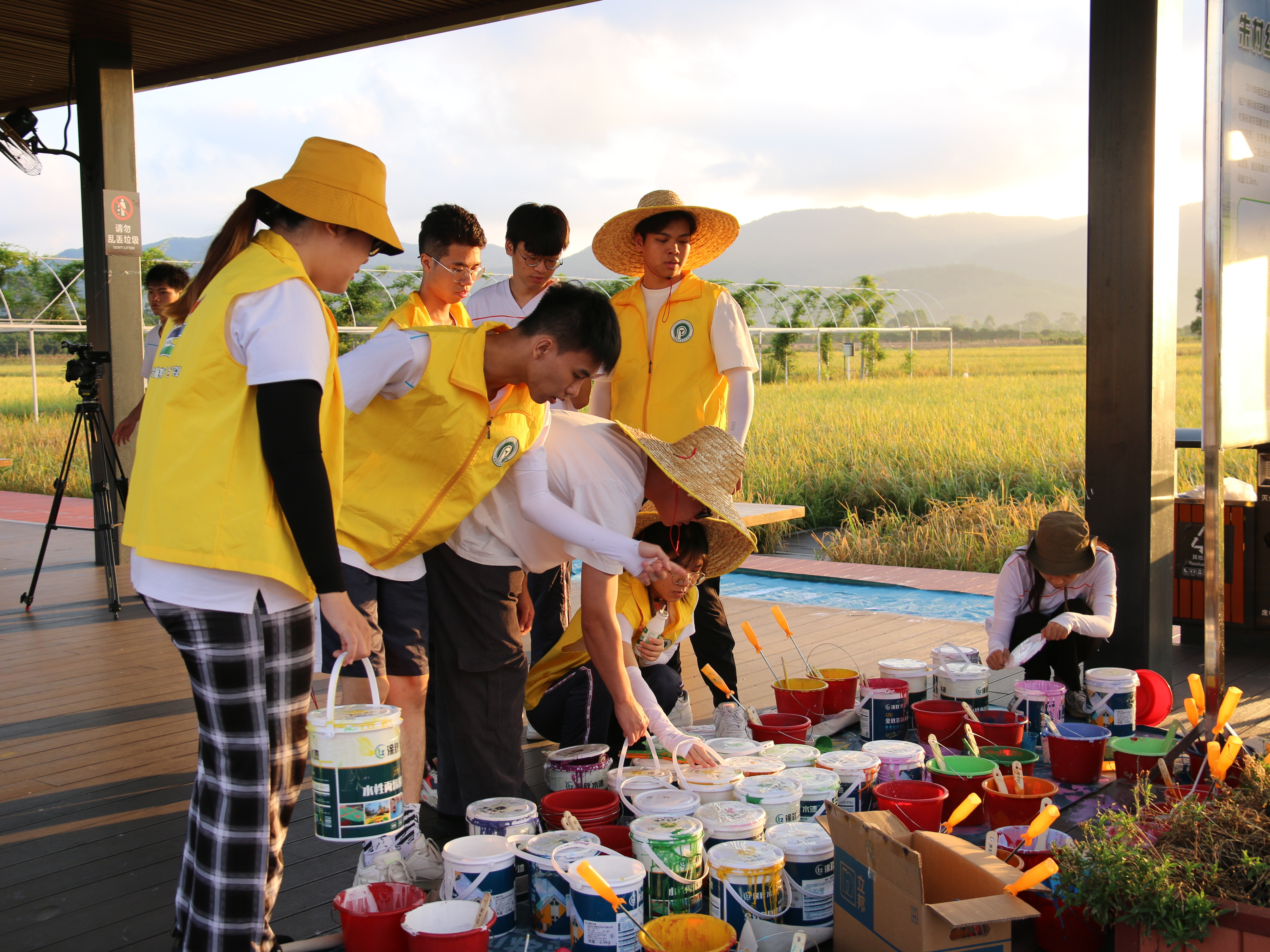 如果说设计阶段考验的是人,那么实地绘画则还要考验天时、地利、人和,更多的挑战来源于团队、天气、绘画点的环境等。