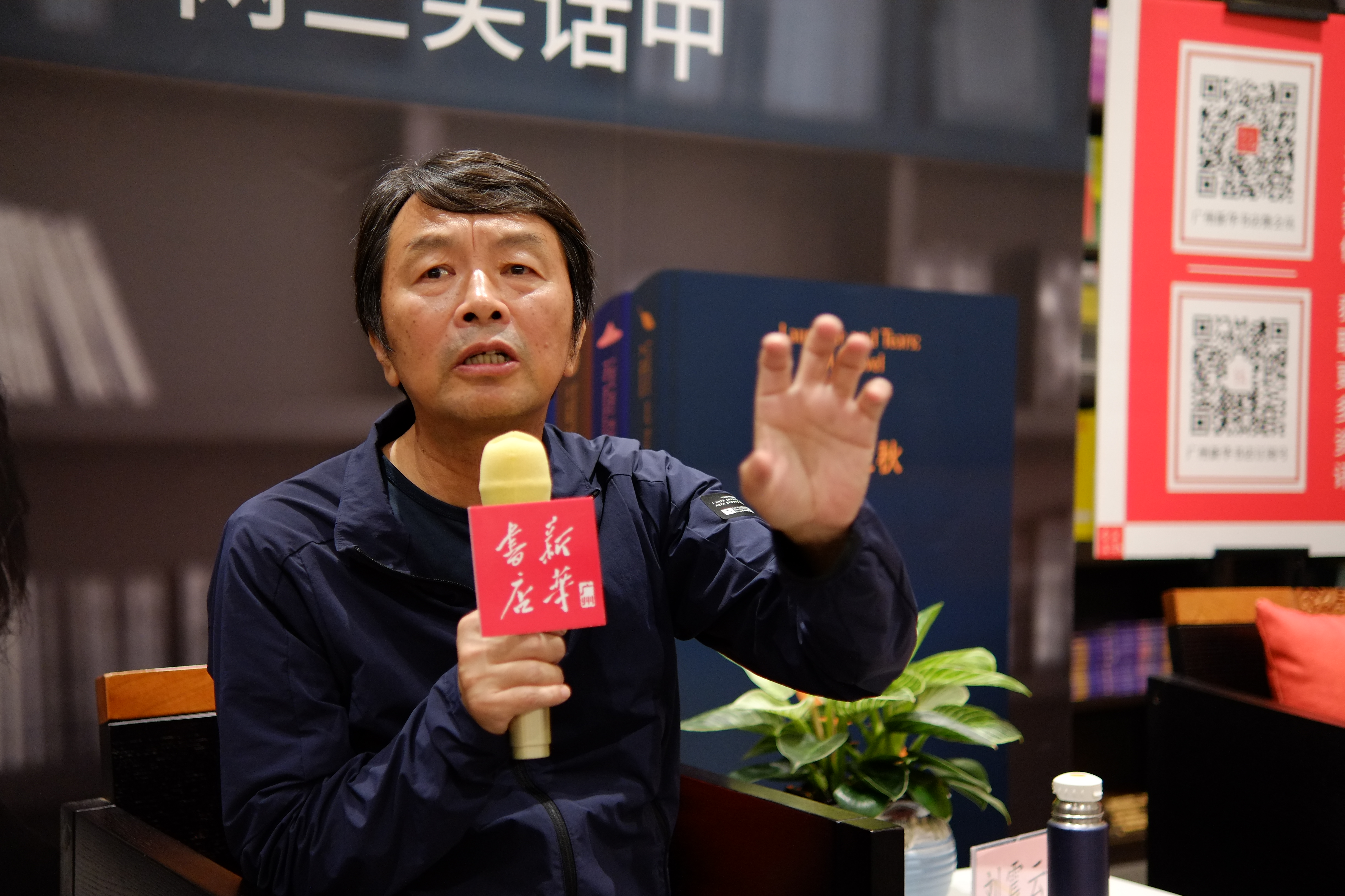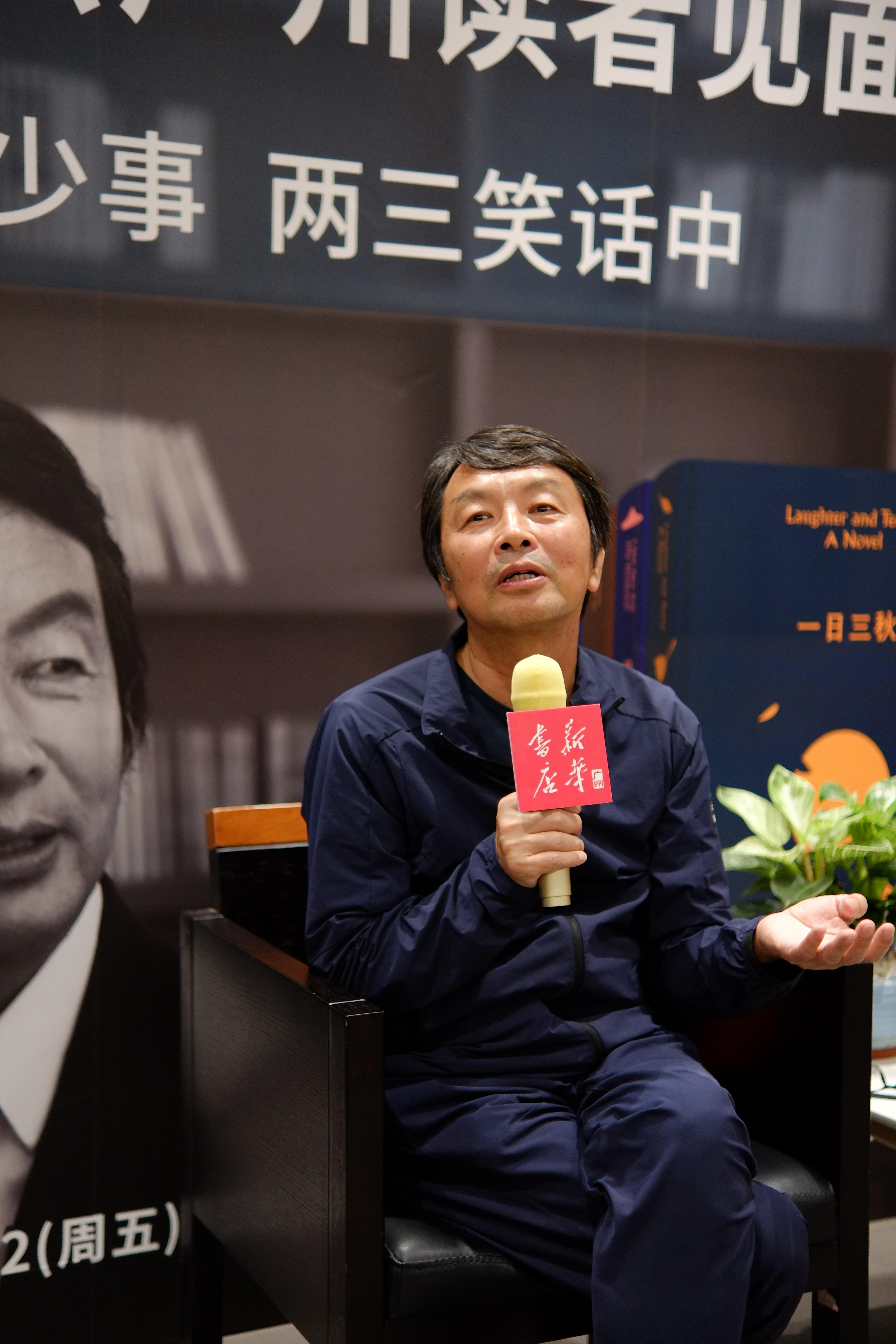 新复业的广州首家新华书店——北京路新华书店三楼“书纽学堂”座无虚席。著名作家刘震云从《一地鸡毛》聊起,话题遍及《温故一九四二》《一日三秋》《我不是潘金莲》等多部读者耳熟能详、收录进《刘震云作品选》的经典之作。刘震云通过放松自如的讲述,将“人间多少事”,从“两三笑话中”娓娓道来,引得全场读者不时发出阵阵笑声,气氛热烈。