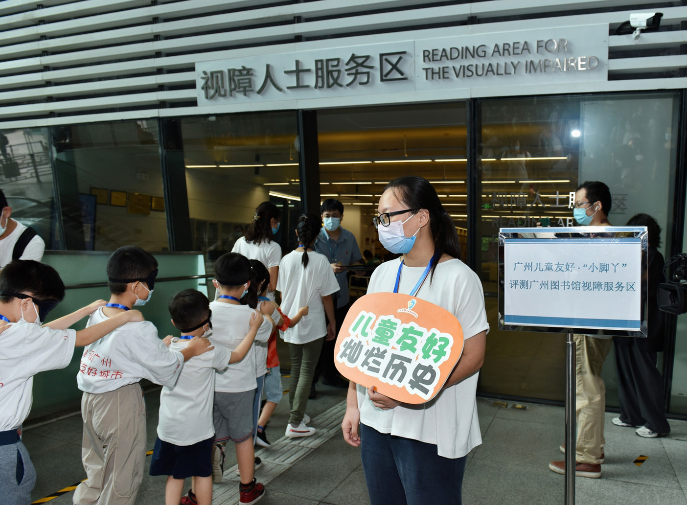 广州图书馆的馆员现场教孩子们学会触摸盲文“中国”二字,这次的盲测让孩子们收获满满,让所有参与的小脚丫感受到了视障人士的坚强和勇敢。“未来我会更关注广州市区的盲道,再看到有杂物占用盲道的情况,我会主动帮助搬开,因为我知道这些盲道对一个看不见光明的人来说就是眼睛!”参加本次活动的“小脚丫”表示。