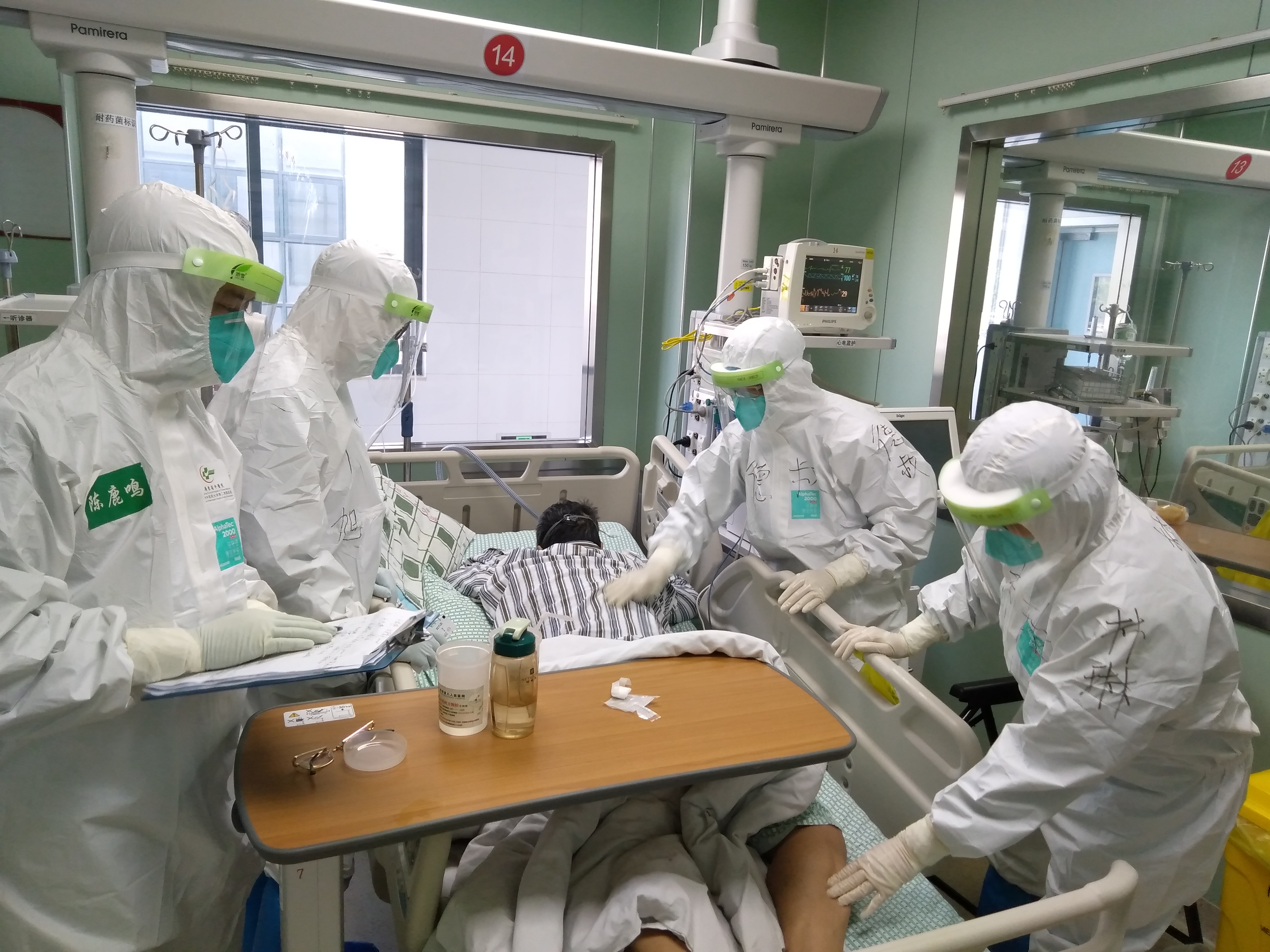 2020年初,湖北省中西医结合医院,德叔嘱咐即将进入隔离病房的队员注意院感防护。