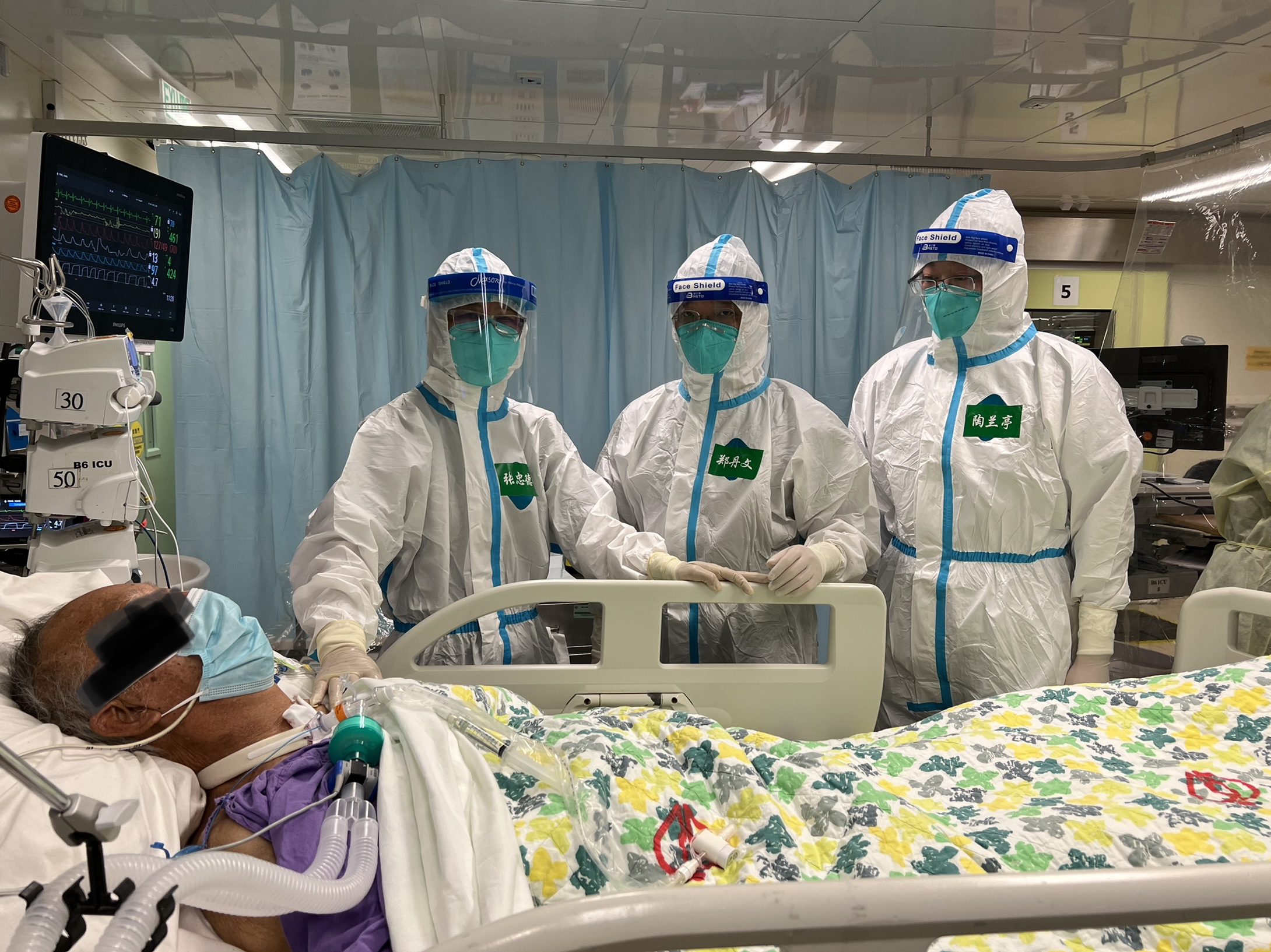 德叔带领援港队员在香港伊丽莎白深切治疗部诊治危重症患者。