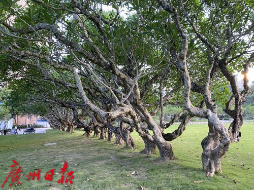 图为珠海市白莲洞公园鸡蛋花古树群。