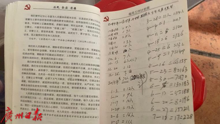 自2014年10月18日首剪开始,这对老夫妻俩便将剪发时间、人数等情况,记在一本“党的群众路线教育实践活动学习笔记”手册里。他们二人都是党员,领到这本册子后,翻了一翻很受启发,也想做些实实在在的事情。