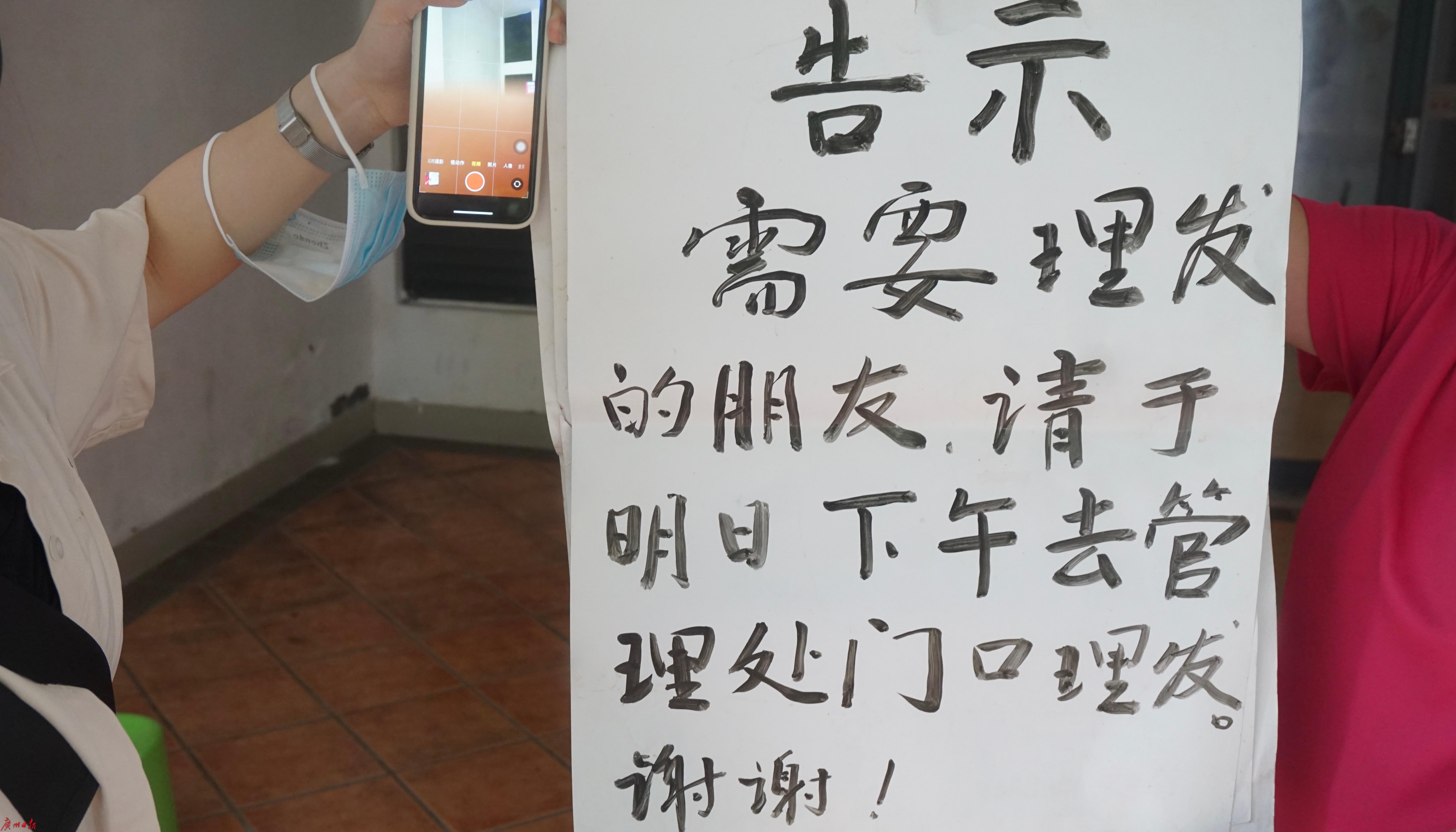 最初只是一时起意,不知不觉间免费理发摊竟然坚持了8年,成为了街坊生活中不可或缺的一部分。如果因事外出必须更改理发时间,他们会在家门口贴上手写的告示以示提醒;同样,“开张”的时间一样提醒到位。