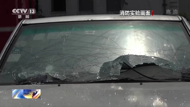 车门关闭后,大概25分钟,一瓶蓝色的降温喷雾率先发生爆炸,挡风玻璃上被炸出一个直径约20厘米的圆形爆裂纹,旁边的喷雾也被弹飞。7分钟后,留在仪表台上的另一个降温喷雾也发生了爆炸。