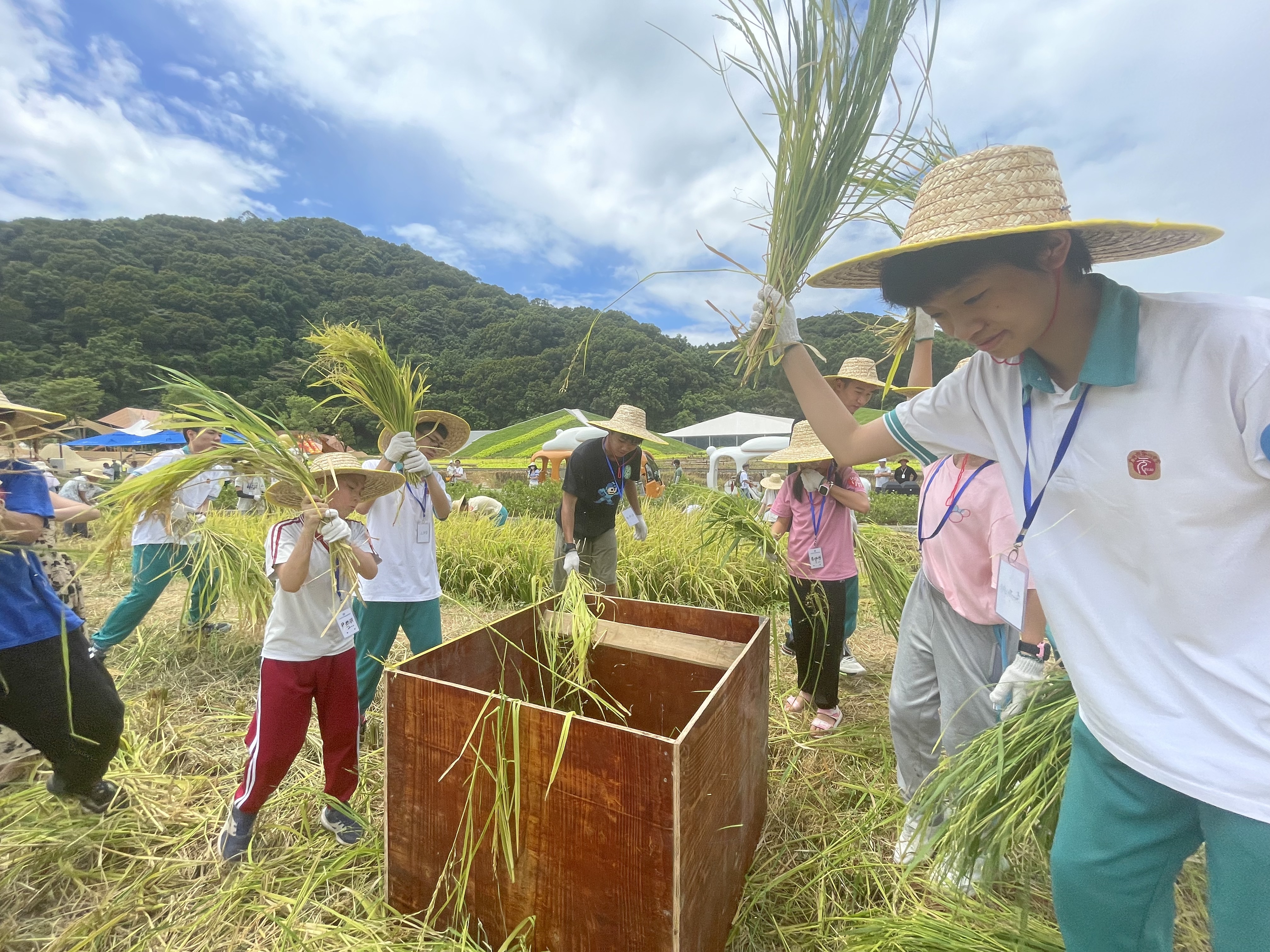 旌旗招展,锣鼓喧天,群狮舞动,唢呐悠扬......8月19日上午,100多名来自广州第二中学、广州第六中学、清华附中湾区学校、协和小学的学生们一起参加“2022年广州市中小学劳动实践体验活动暨天人山水稻田丰收节”收割开镰仪式民俗活动,亲身感受劳动的魅力。来自广州第二中学的一位女同学表示,第一次近距离参与这么喜庆的民俗活动,透过‘咚、咚、咚’的鼓点声和唢呐声,真正体验到“丰收”喜悦。