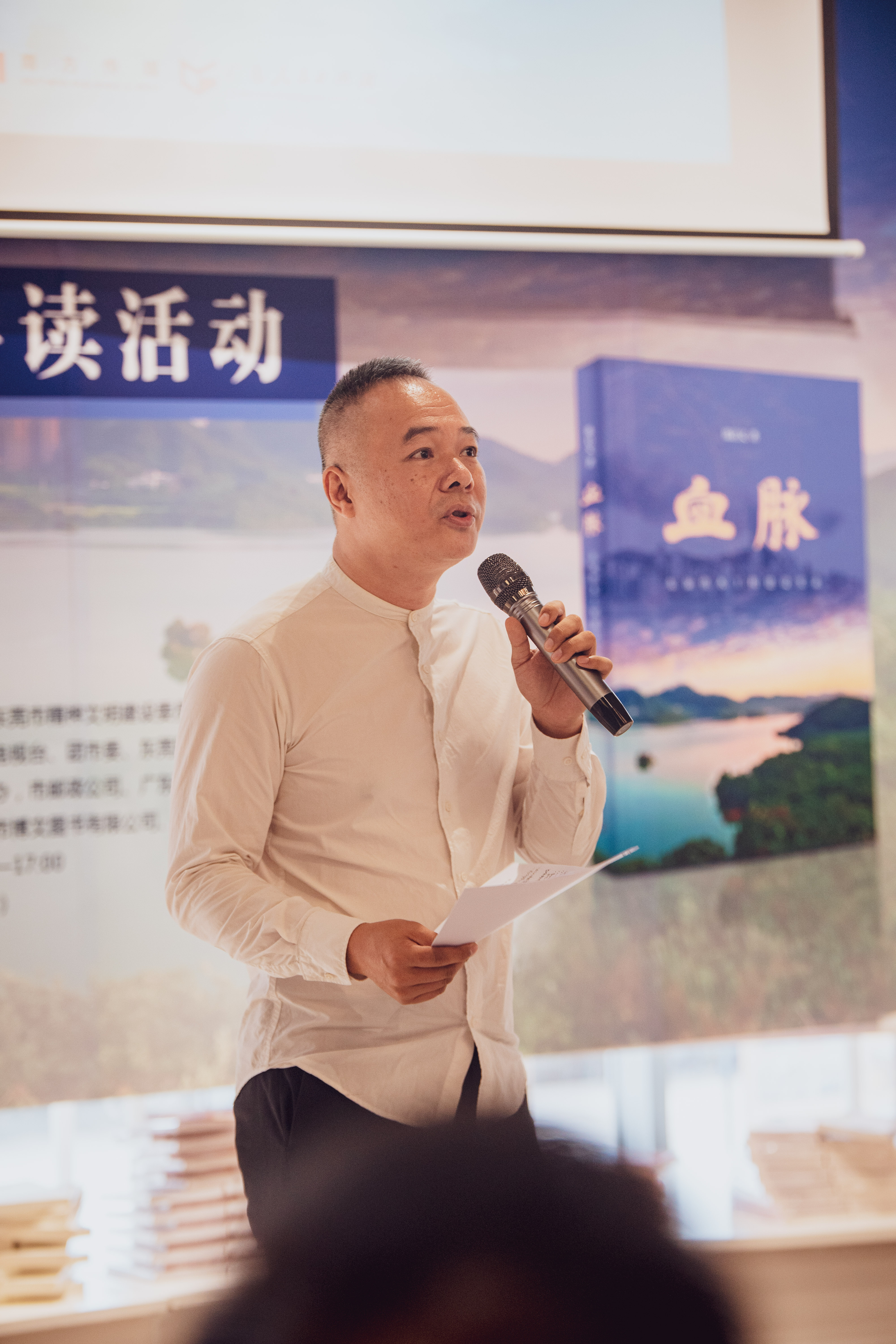 本次活动采用嘉宾分享导读的形式,作者陈启文携手东深供水工程建设者代表严振瑞总工程师、粤港青年代表利家兴,分别从创作者、亲历者和研究者的角度,与线上线下读者分享《血脉》的创作心得与阅读感悟,带领大家回顾东深供水工程与工程建设者群体的光辉历史,并与现场观众进行互动交流。