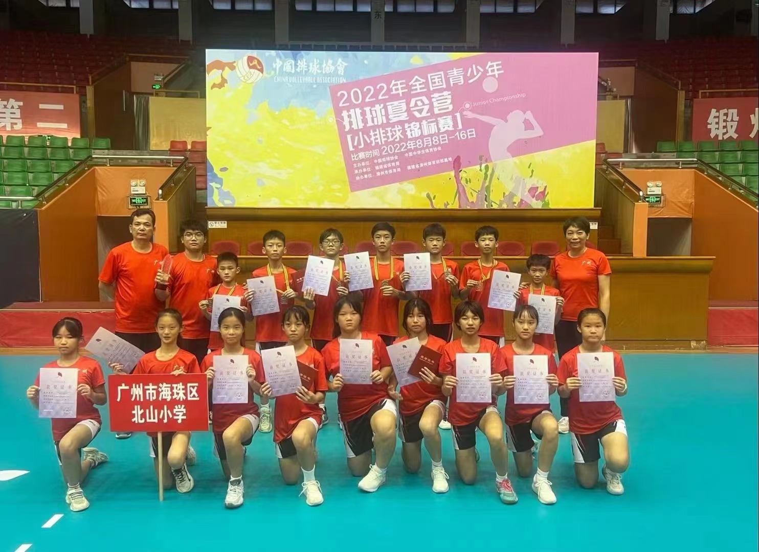 在8月15日落下帷幕的2022年全国青少年排球夏令营暨小排球锦标赛中,广州市海珠区北山小学排球队夺得男子甲组亚军、女子甲组第九名的好成绩。