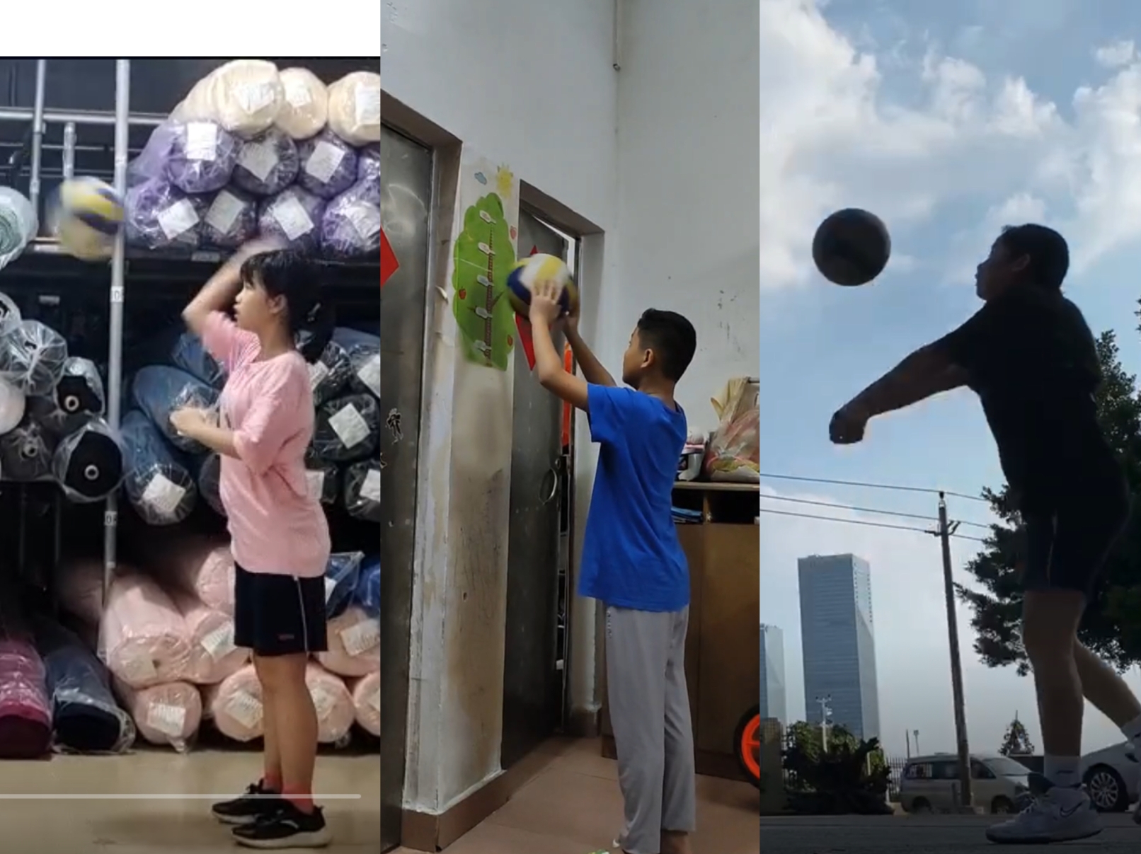 在仓库、在家中、在户外,北山学生假期里仍坚持练习排球。