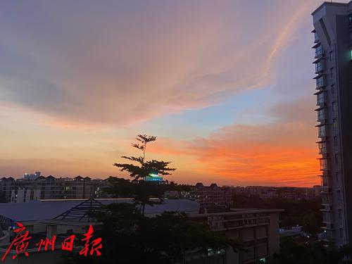 8月23日傍晚19时12分,广州天边出现“火烧云”。