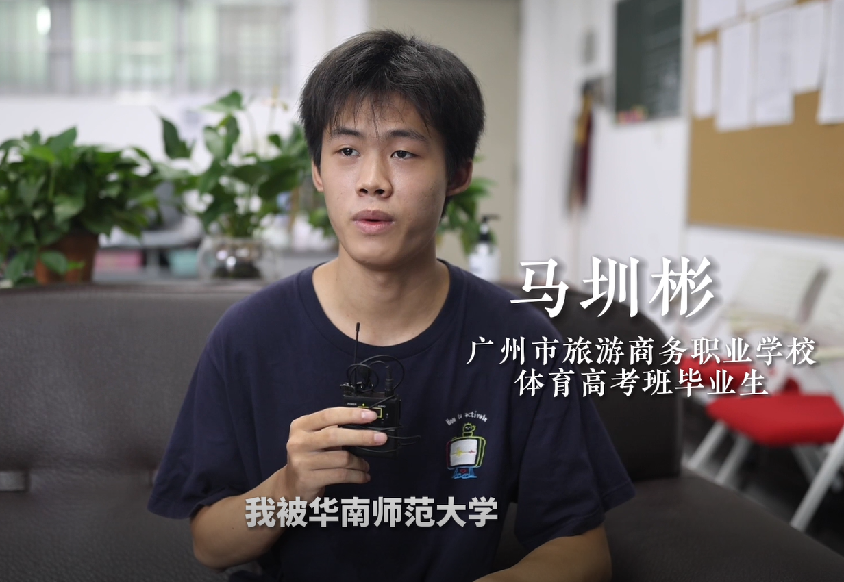 今年毕业于广州市旅游商务职业学校的马圳彬,近日收到了华南师范大学发出的录取通知书,“全家很开心,在学校的支持、老师的帮助下,我通过自身努力圆了升学梦”。他阳光、自信,是一名体育特长生,手握总分605分、术科297分(满分300分)、全省第92名的成绩,“术科主要考了100米跑、立定三级跳、原地推铅球和一个专项,发挥比较理想”。马圳彬透露,未来会争取进入校足球队并继续考研,再回母校当体育老师,将自己的技能和经验传授给更多人。