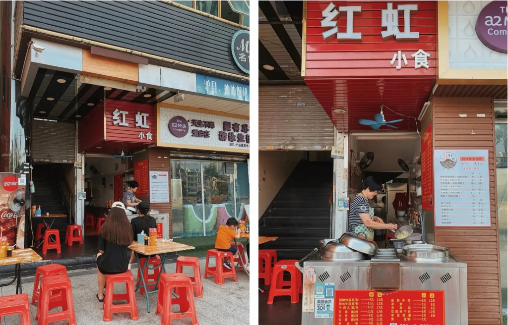 仅隔一个地铁站,就藏着黄埔最地道的烟火美食,这个“吃货天堂”就是位于大沙街道的大沙地。如红虹小食是许多街坊从小吃到大的店,有牛杂、肉丸、叉烧、云吞等,已经在黄埔开了几十年,虽然藏匿在小角落里,但依旧有不少街坊寻味而来;在河婆美食,点一碗香气扑鼻的梅州腌面,味蕾瞬间苏醒,这也是老广不可或缺的味道。客家擂茶饭,也是这里的一大特色里面,有虾米、花生、瘦肉,茶汤很浓,味道超正点。