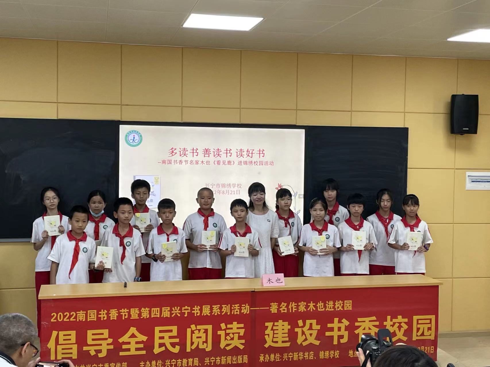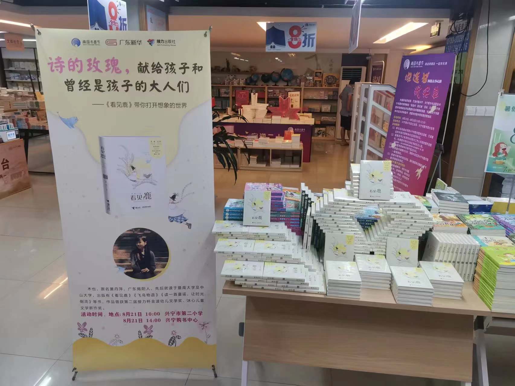 2022南国书香节期间,广东青年作家木也携温情童话《看见鹿》亮相惠州、兴宁、潮州、揭阳等城市校园、图书馆和特色书店。
