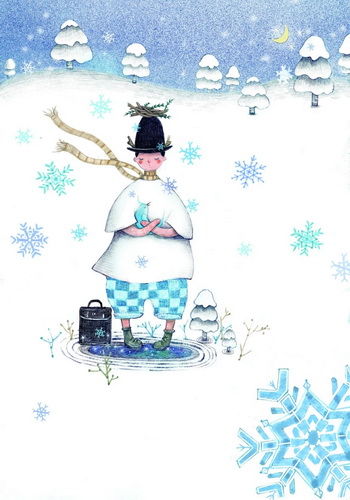 毫无疑问,这部作品为“幼儿文学”如何拓展内容边界、提升艺术格局,带来了新的和开阔的气象。在“浅语”书写上,《看见鹿》的大部分篇什,是符合幼儿文学的语言特点的。比如《雪花落下》,全篇只有百把个字,皆是“浅语”。还有《小雪人和雪人妈妈》,语言清浅,故事也充满温馨的亲子意味。