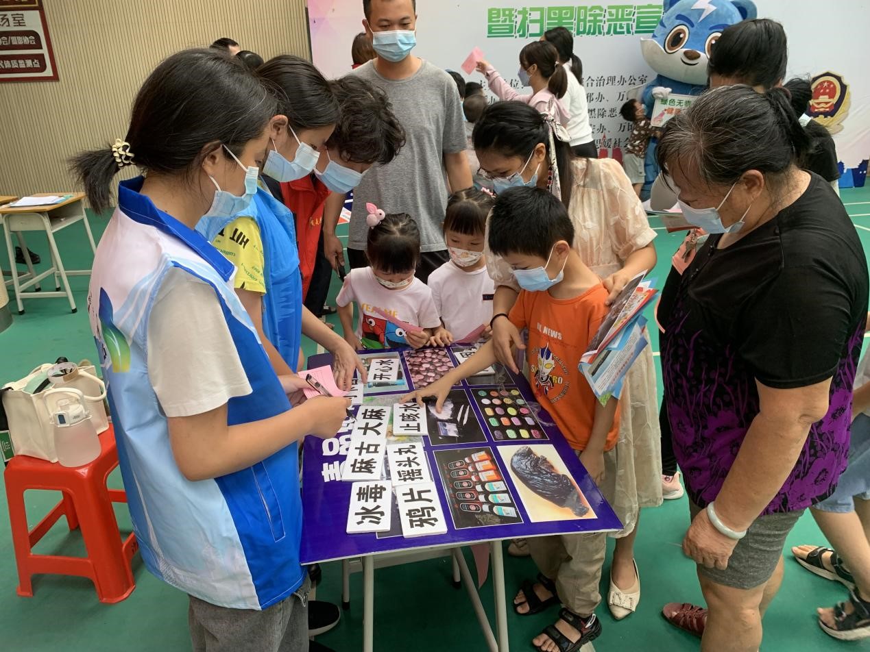 除此之外,现场还设有“毒品连连看”“慧眼识毒”等互动游戏,帮助居民群众加强对禁毒反邪、扫黑除恶知识的巩固。