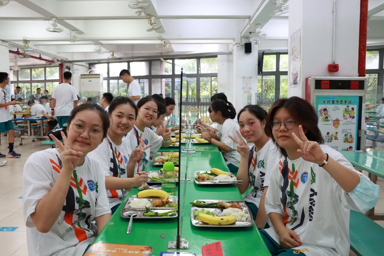 对新生而言,天省食堂更像是一座温馨的加油站。工作人员会在训练结束前20分钟打开空调,营造舒适的用餐场所。阿姨们提前准备好美味的饭菜,等待训练场上的孩子们归来。每餐菜式都不相同,保证一大荤+一小荤+一素菜+水果,保证大家训练期间营养均衡。除此之外还贴心地提供了绿豆水和菊花茶,供大家在炎热的天气里消暑解渴。