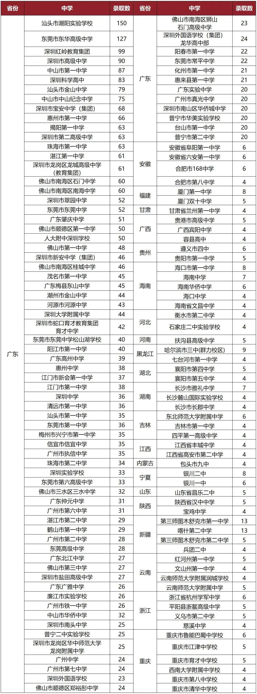 其中,广州二中有82名学生被华南理工大学录取,省实有79人,执信有70人,广雅有69人,广大附中大学城校区有53人,六中有53人,七中有43人,广州中学有42人,铁一有37人。