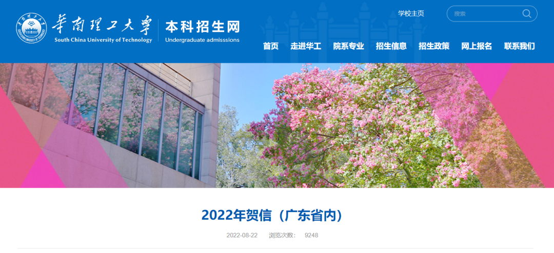 8月22日,华南理工大学招生办官网发布了2022年贺信(广东省内),其中公布了华工在广东省内的录取生源情况。