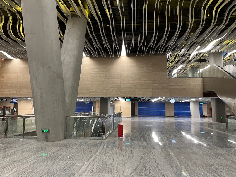 (彩虹桥站厅北端有蓝色挡板,后方通往11号线、13号线站厅)