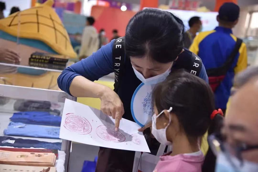 大家都喜爱的互动项目——团扇印吉祥和滚轴拓双凤也会随考古人们的脚步从广州去到郑州。团扇纹饰取自广州考古出土、南汉二陵博物馆馆藏西汉四乳连弧铭文铜镜,纹饰上有十六瓣连弧纹缘,圆钮,柿蒂纹方形钮座,外框方形铭文12字“长贵富、乐毋事、日有熹、宜酒食”,寄托了先民关于平安、富贵的美好愿望。滚轴纹饰来自广州考古出土、南汉二陵博物馆馆藏五代南汉时期双凤纹瓦当,内圈为首尾相连的双凤,栩栩如生。凤鸟是祥瑞的象征,用在屋檐之上更显吉祥入屋之兆。
