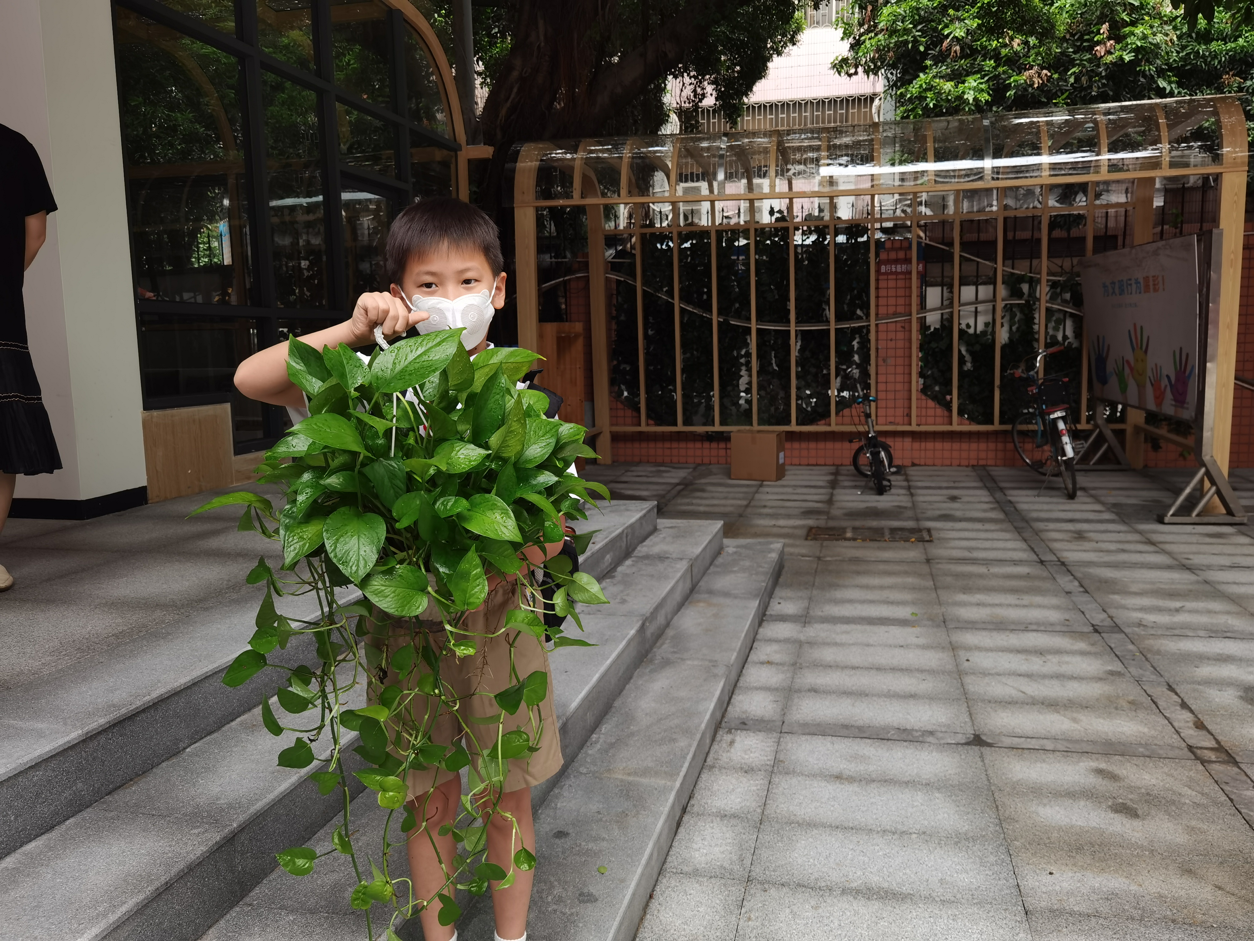 二年级的一个小男孩带了一大盆绿植回到班里。绿植生机勃勃,寓意新学年,新希望,新愿景。