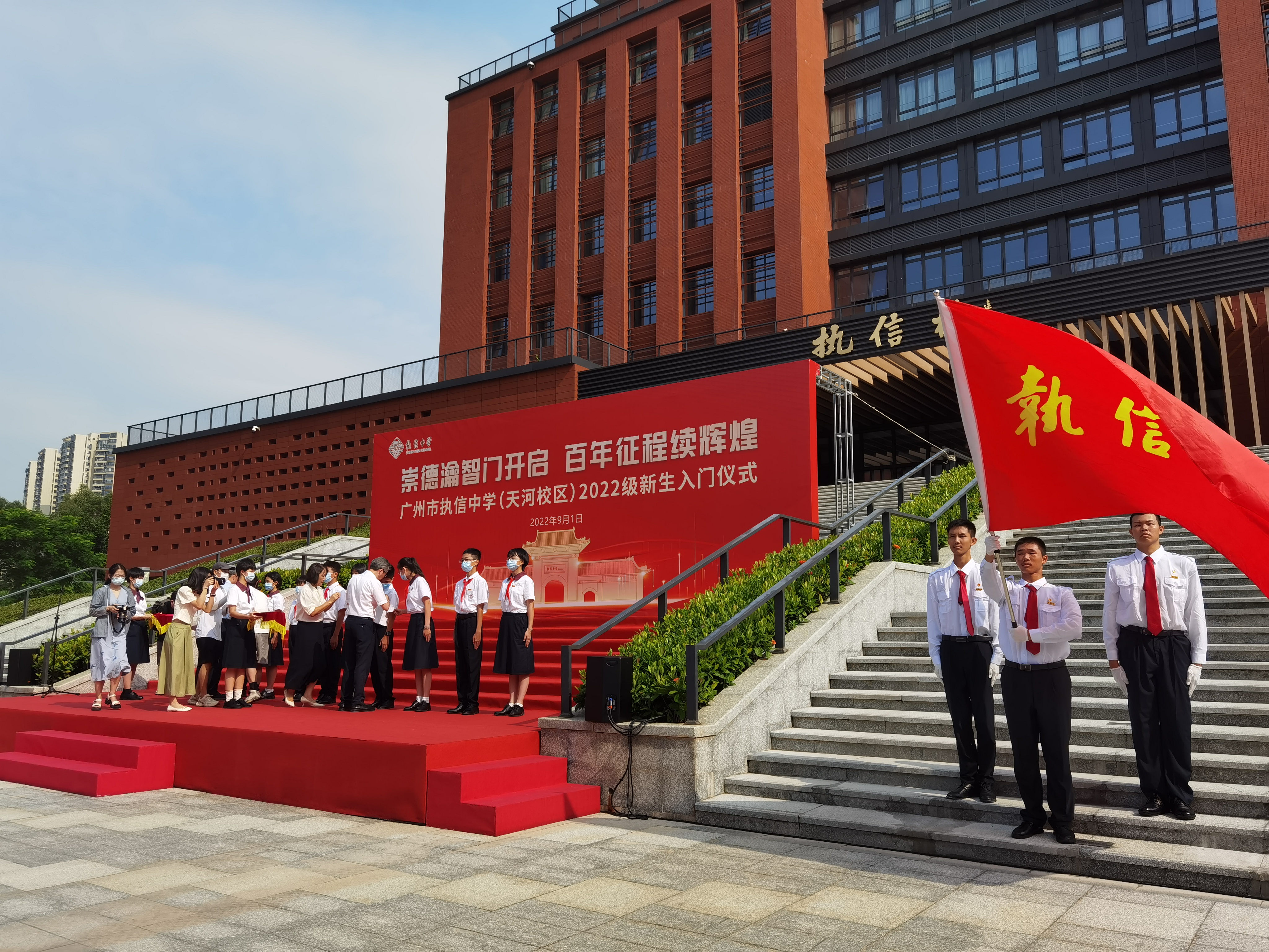 同学们,执信中学是求学问道的地方,刚才你们昂首阔步迈入崇德瀹智之门,意味着你们已经正式成为了一名光荣的执信人,执信人的称号从此将永远伴随你。你们的肩上也多了一份责任和义务,你们要以执信人的标准来要求自己,塑造执信人的形象,维护执信人的名誉。
