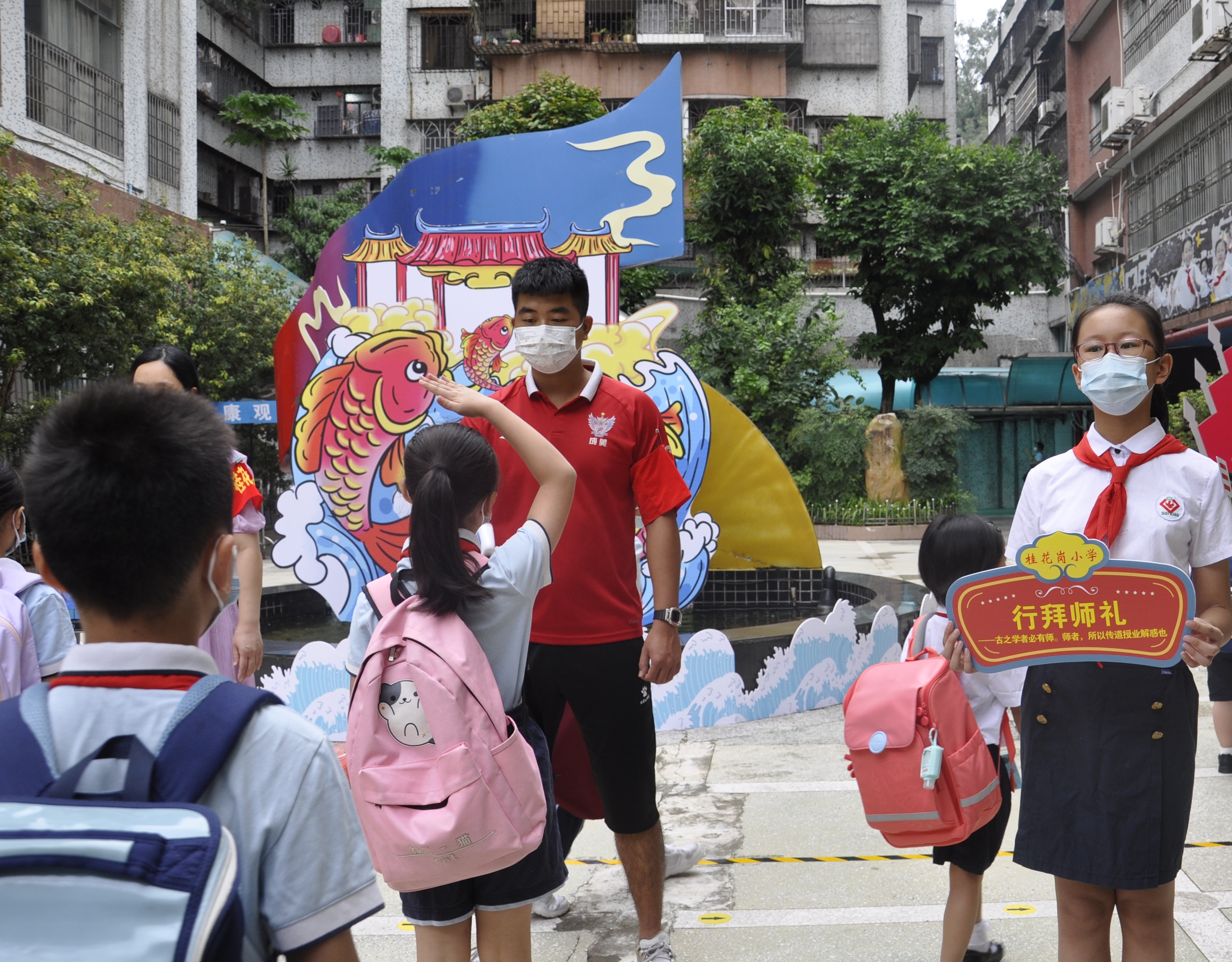 开学第一天,天河区冼村小学以别开生面的“开球礼”迎接新生。在全场师生的助威声中,一年级新生们踢出了“人生第一球”。据悉,该校基于“以球育人”理念,积极开展校园足球活动,每周一节足球课,每个学期组织“以球育人”专题研讨,该项目在广州市第七届中小学德育创新成果展示活动中获三等奖。