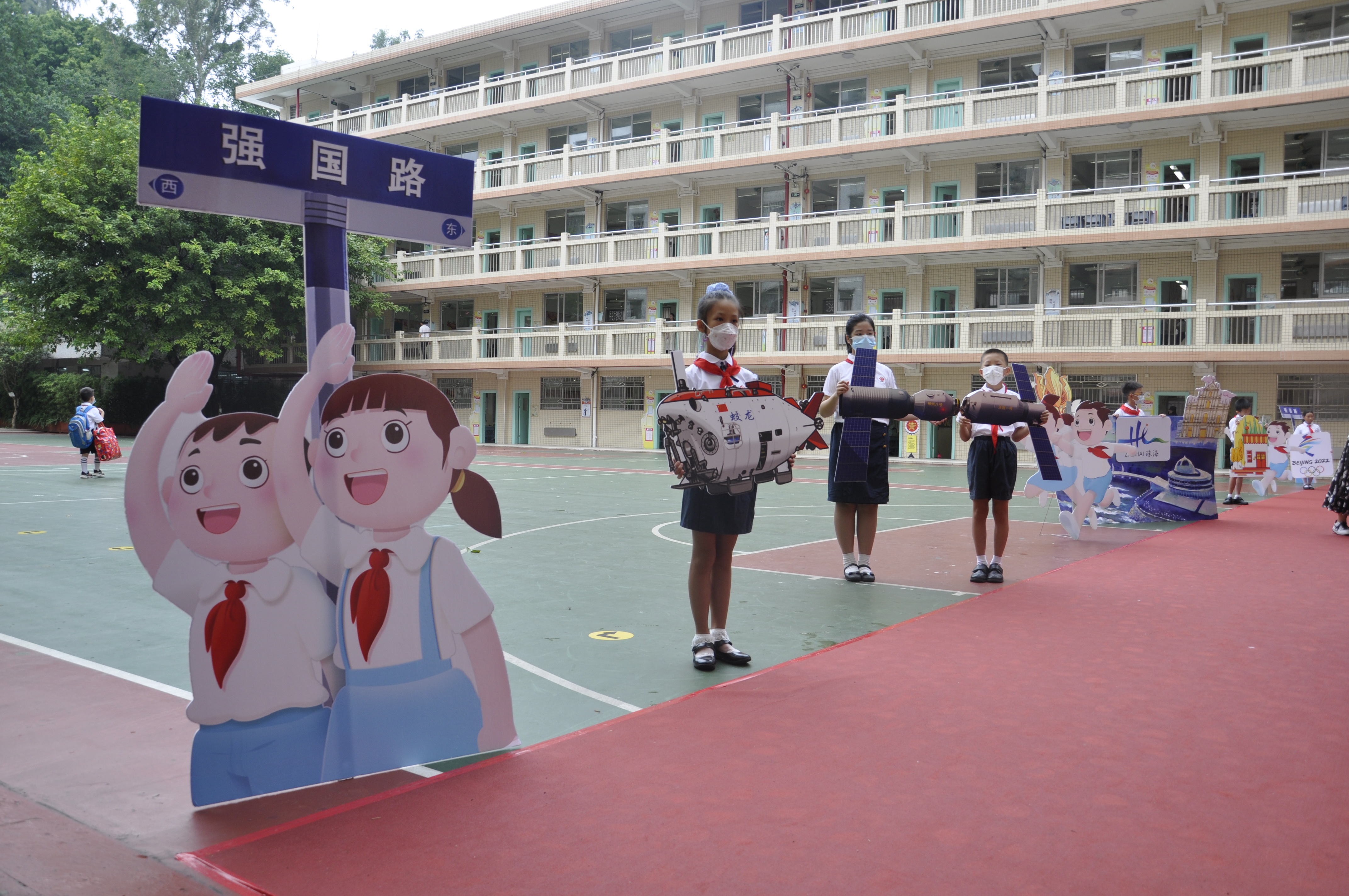 “从校门走到教室真好玩,我敲了大鼓,还摸了好多水果、沾了福气。”一年级新生兴奋地说。高年级的“小桂花”则表示,“走在‘强国路’上,我感觉特别自豪。我们的科学家为祖国研发了国之重器,我也要好好学习,以后接力设计!”