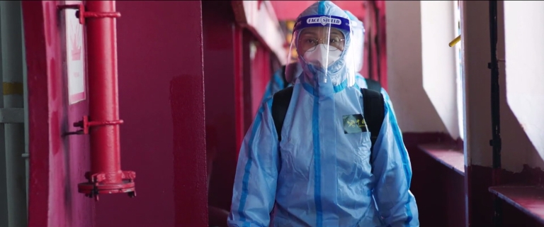 有些国际货轮压舱水排完后有10层楼高,每次她都穿上防护服,拎着沉甸甸的检疫箱沿着舷梯爬上去。同事们看着她苍白的脸、汗透的衣衫,总劝身体不好的她悠着点。她却认真地说,“我们的每项工作都关系到疫情防控工作的细节,关系外贸的发展和企业的期待。”