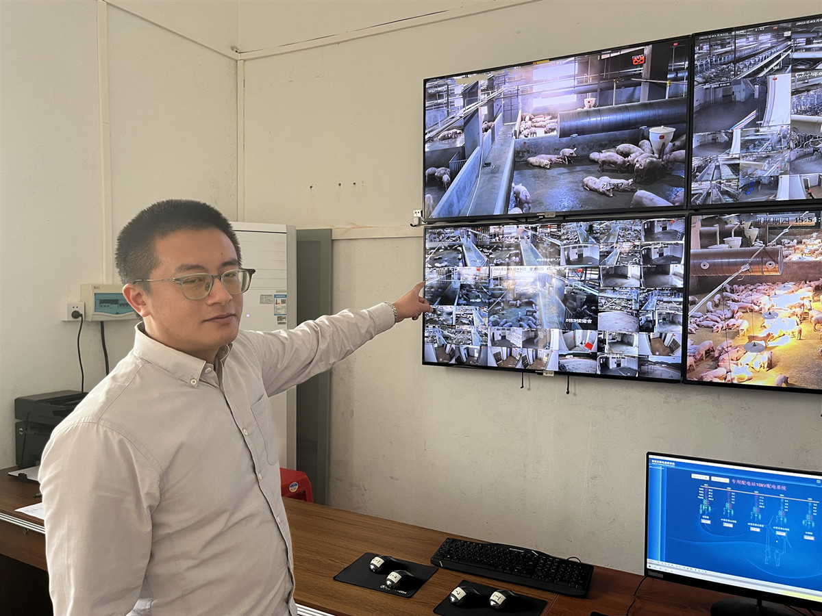 作为新时代的“新农人”,冯旭将很多高科技都应用在了养猪上。如今,通过手机软件,冯旭就能直接查看养猪场每个区域内生猪的实时画面。“智能化养殖不仅省时省力,还减少了人与猪的直接接触,降低了防疫风险。”