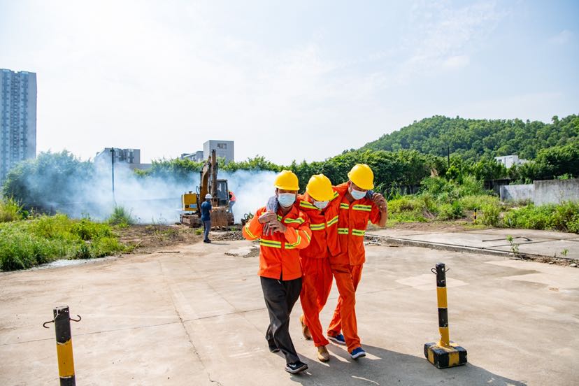 据悉,本次演练全面模拟了番禺区市广路祈福停车场内挖机施工不慎损伤燃气管道引发管道燃气大量泄漏事故,随后受损燃气管道所属单位(广东大鹏液化天然气有限公司)通过压力监测系统及现场专用摄像头确定事故区域,立即启动应急预案,关停管道燃气输送、派出抢险救援队前往现场处置。