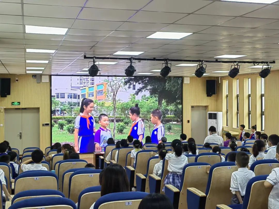 在新校区启动仪式伊始,学校校长陈表香向全体师生致欢迎词,给予环小学子开启新学期的动力和信心。在开学致辞中,陈表香表示,学校将致力于教育教学创新,更加积极主动承担社会职责,履行“爱绿护绿,从我做起”的光荣使命。开学典礼上,来自新疆、湛江、连州、廉江等地的结对学校,各共建单位发来祝贺视频,用饱含热情的祝福,为莘莘学子开启学习之门、智慧之门!