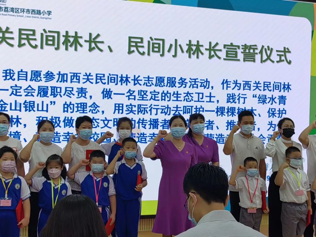 据了解,自林长制工作全面推行以来,荔湾区西村街道围绕省市区关于全面推行林长制工作的文件精神,创新爱林护林机制和尽责形式,注重将生态文明教育融入辖内学校育人全过程。西村街道党工委书记陈粤晖在讲话中表示,要发挥林长榜样作用,广泛动员社会资源,落实林长制度走进学校,走进家庭、走进社会,以“小手拉大手”辐射家庭,以推行西村街民间林长制度辐射社会。
