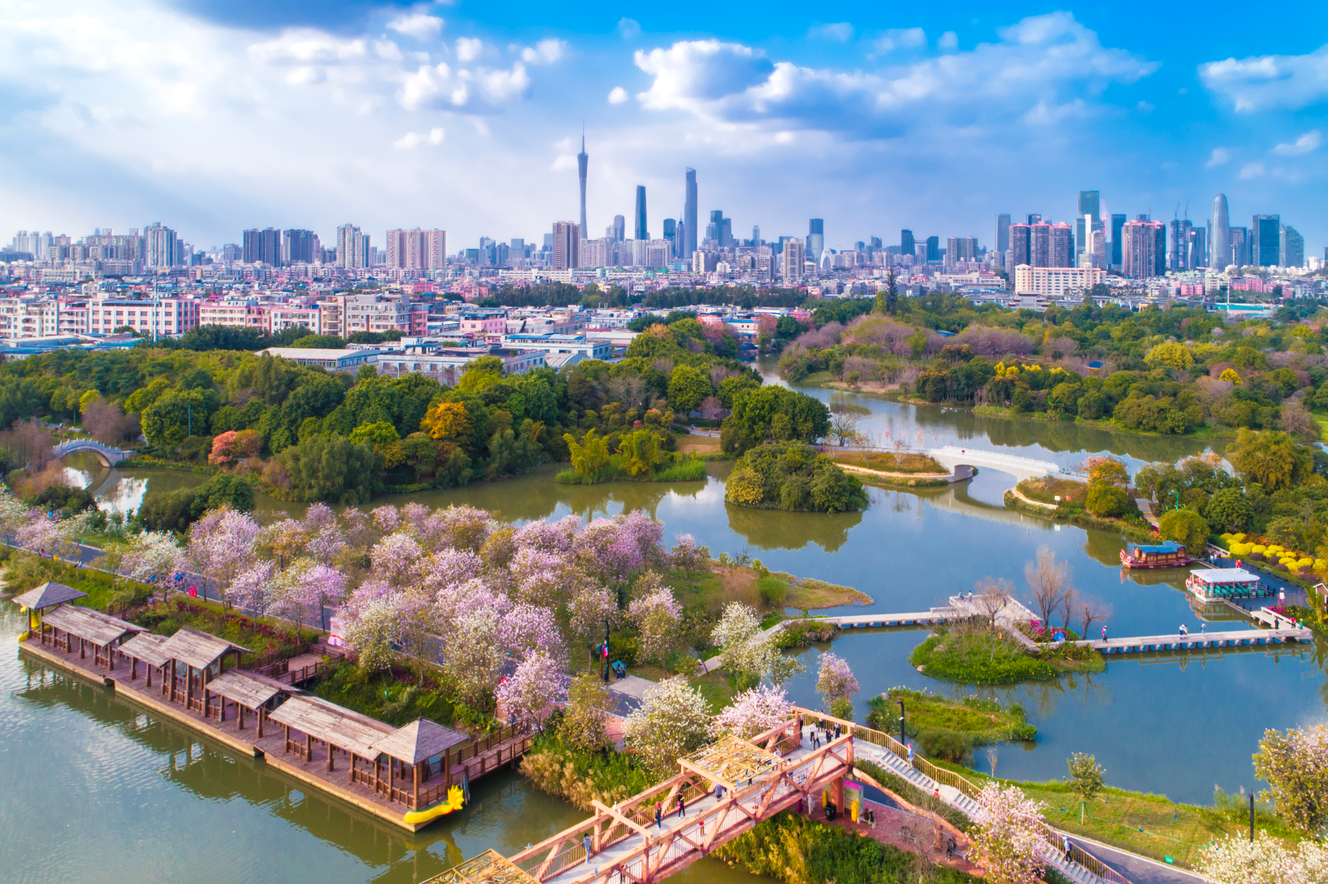 广州依水而生、依水而兴,悠悠珠江水串联起一座座生态公园。城在水边、绿在周边,广州市民可在公园享惬意时光、赏鸟语花香、观湖光山色。