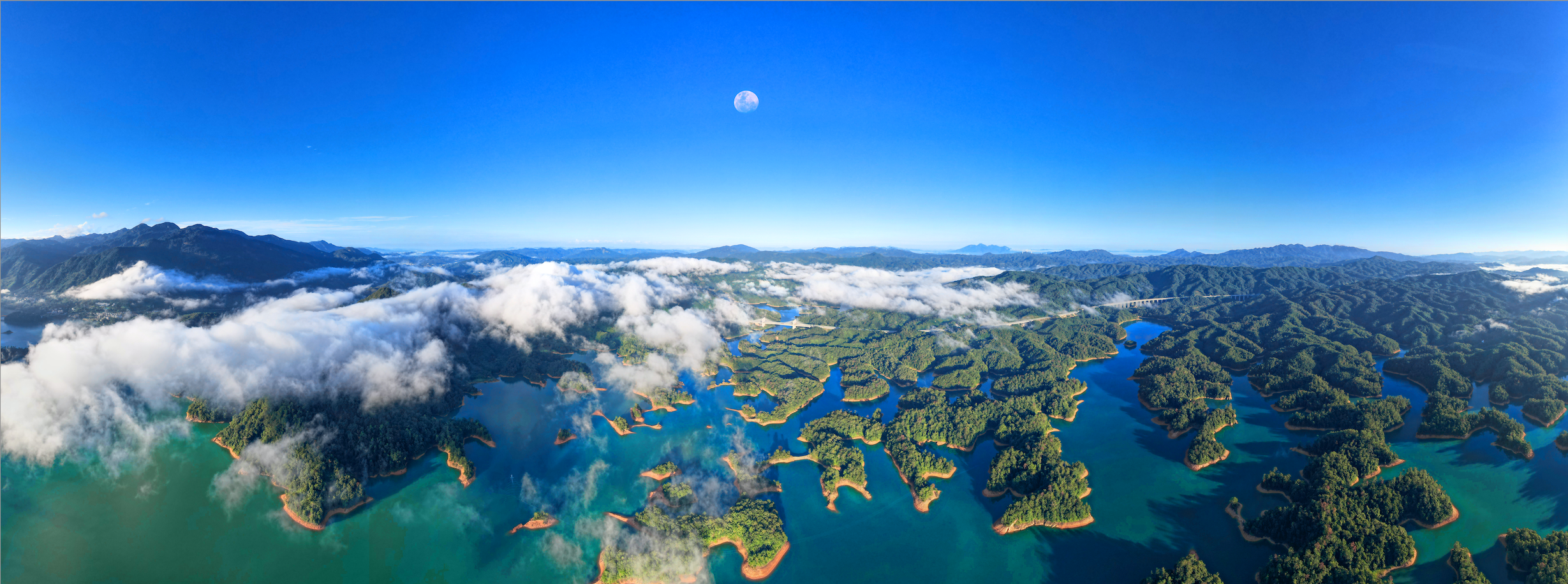 为了一探流溪美景,记者随着清晨第一缕光线来到流溪河国家森林公园周边。从毗邻公园的五指山观景台眺望,流溪河风光一览无余:22个小岛仿佛明珠落入万顷碧波上。晨光穿透云层,岛群置身于云海中,为流溪河国家森林公园添上几分“仙气”。