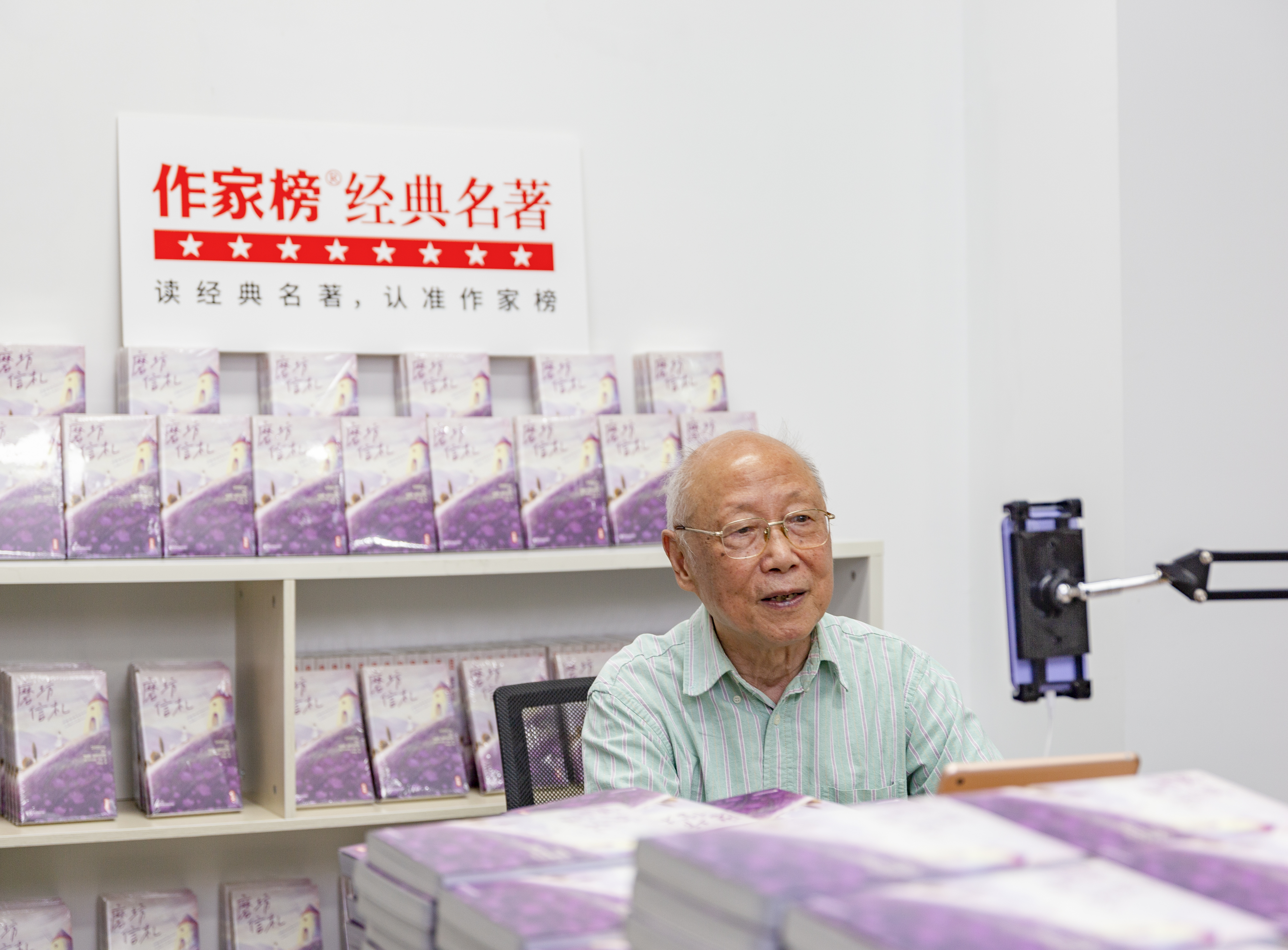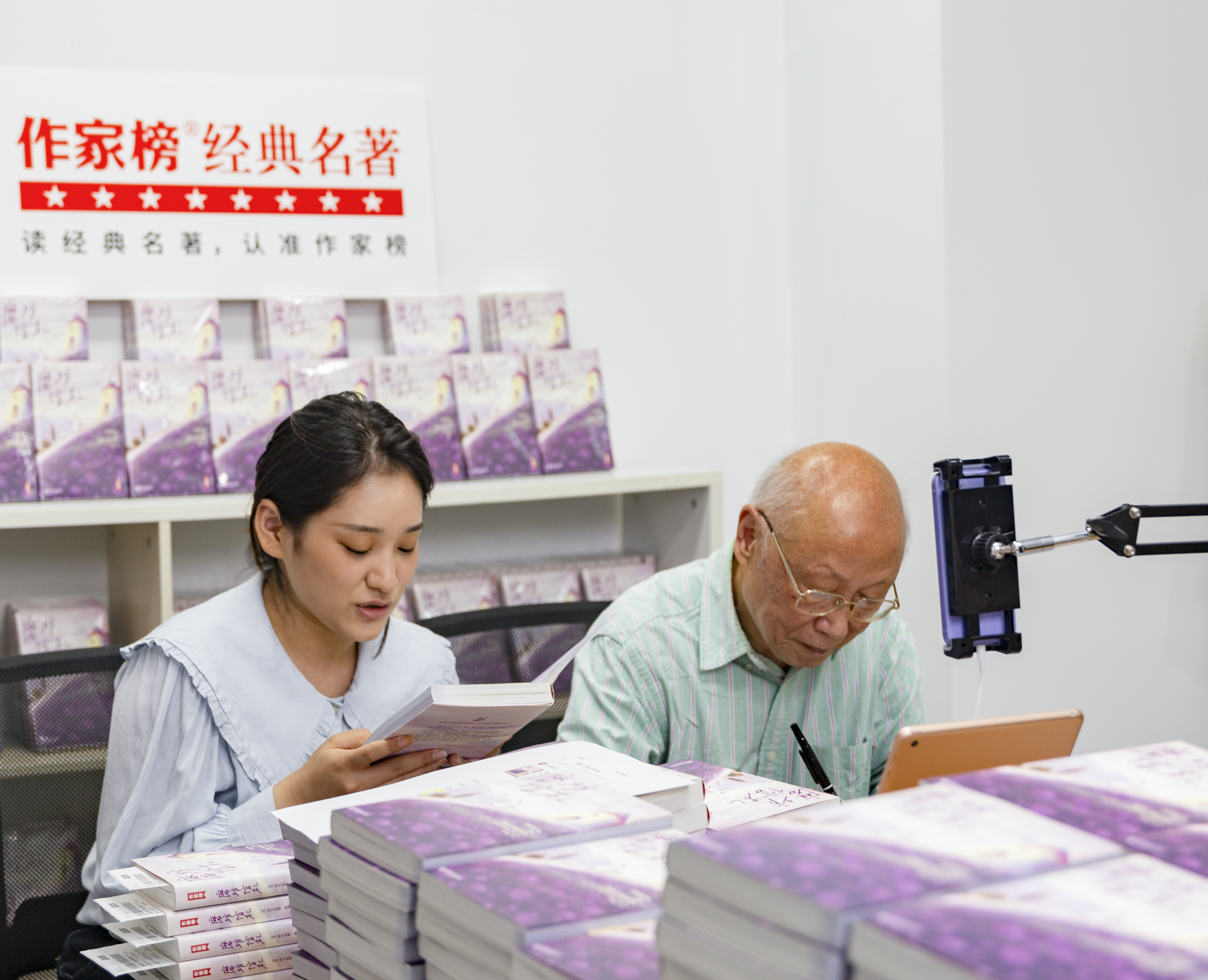 耄耋之年直播感受如何?何敬业告诉记者:“在作家榜直播间和读者互动,拉近名著和读者的距离,我还遇见了自己教过的学生,感到很亲切。这是坐在书斋里,完全体验不到的。全国各地的读者不需要舟车劳顿,就可以便捷高效收到心仪的好书,在线实时沟通,我自己很满意。”