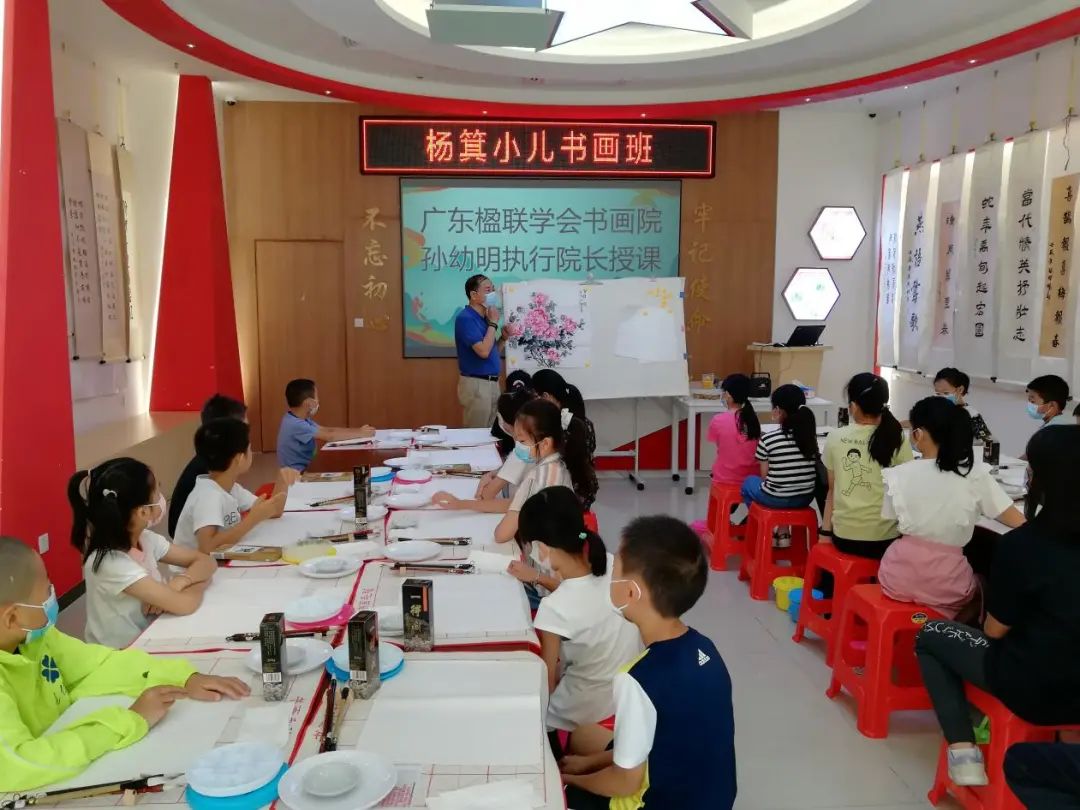 今年暑假,杨箕松风阁乐善学堂联合广东楹联学会书画院开设杨箕少儿书画启蒙班,为杨箕村内满9周岁至14周岁、爱好书画艺术的村民子弟送上免费的书法和画画课。自7月31日举行开班仪式以来,逢周一、周五上课,分别由广东楹联学会书画院相关专业的老师授课。该班招收的都是村民子弟,招生时在各楼栋进行公告,村民们自愿报名、先到先得。