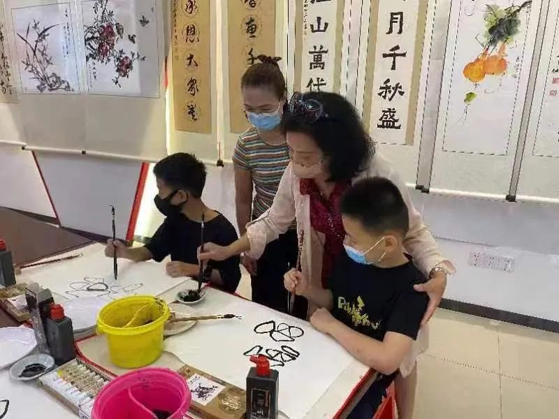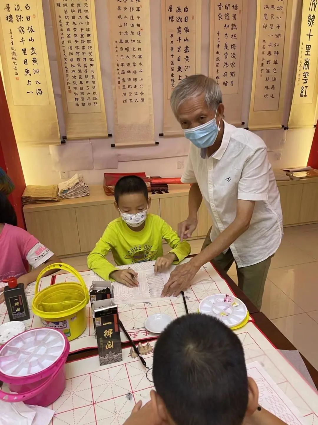 期间,广东楹联学会书画院孙幼明、姚绍燊、贝刚、朱雪娟、刘冬和、曹静、刘肖贞、阮庭芳、姚国涛、吴世康等老师,分别为孩子们带来了国画、书法入门等相关课程的讲授。