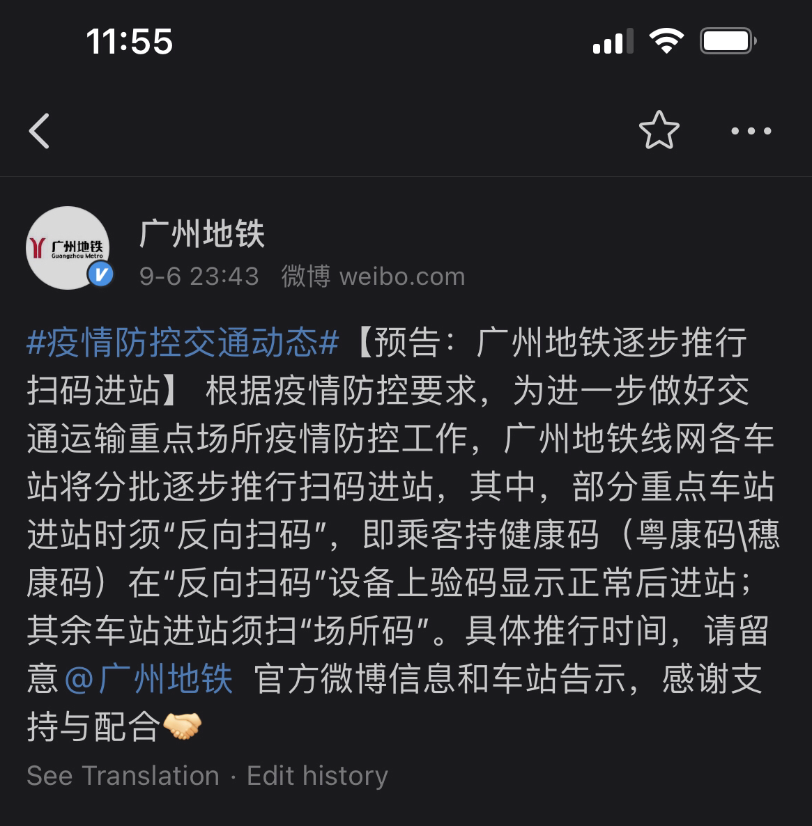 广州地铁微博截图